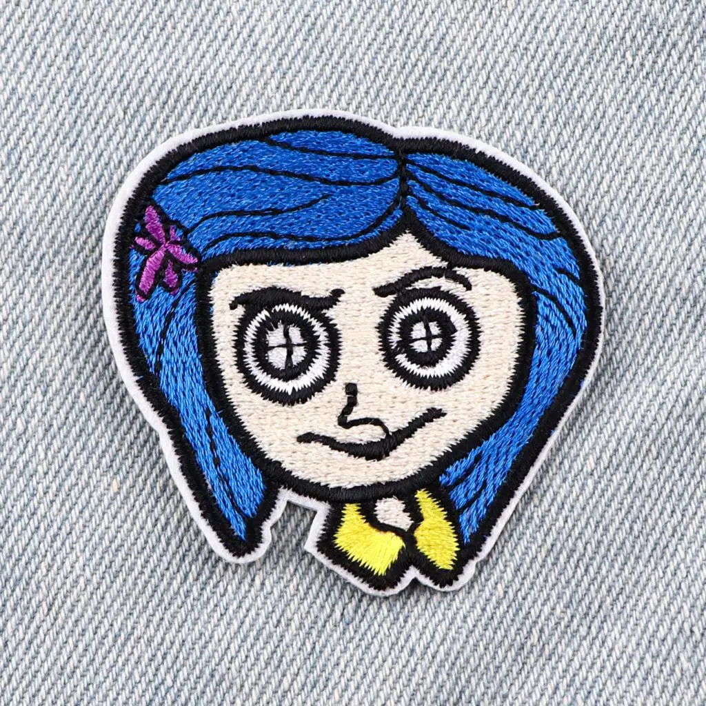Parches de Coralina para ropa, parches bordados de Halloween, Parche de dibujos animados para planchar en la ropa, insignia de pegatina de mochila/jekket