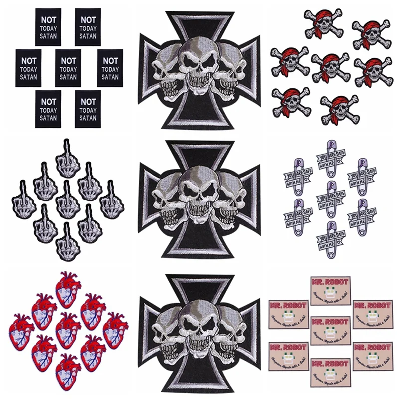 Parches de corazón Punk de calavera para ropa, parches bordados de MR.ROBOT, decodificación DIY para chaqueta y mochila, 10 Uds./lote