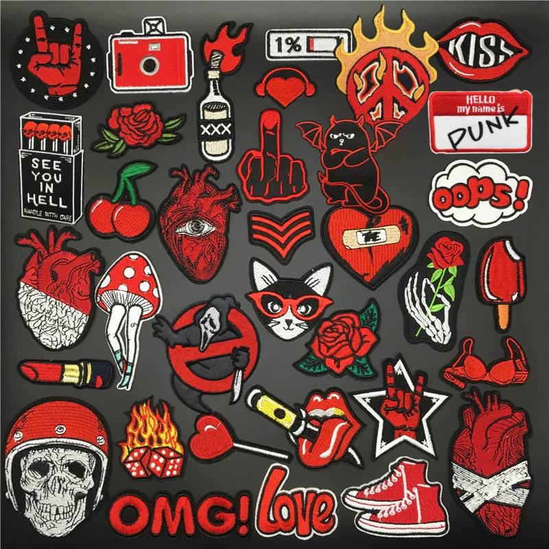 Parches de corazón de fantasma rojo para ropa, insignias de hierro bordadas, rayas para ropa, pegatinas, apliques, parche de decoración DIY