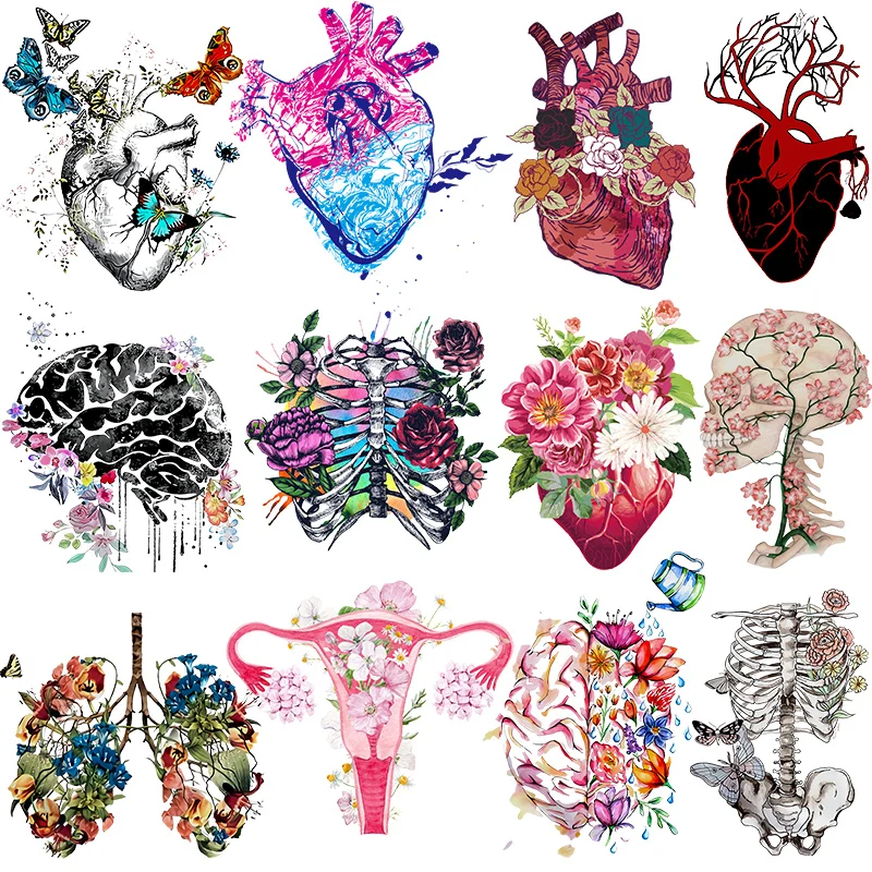 Hierro en corazón cerebro parches para ropa camiseta apliques lavables Transferencia de Calor vinilo pulmón pegatina transferencia térmica para ropa