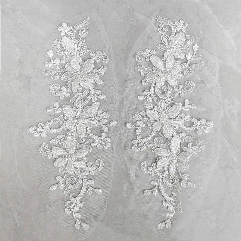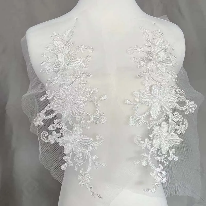 Parches de costura bordados para vestido de novia, apliques de encaje blanco, flor 3d, accesorios de decoración, 33x14CM/1 par