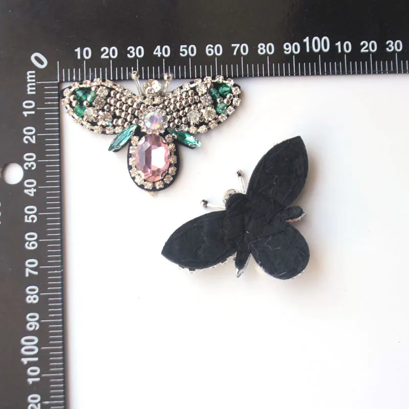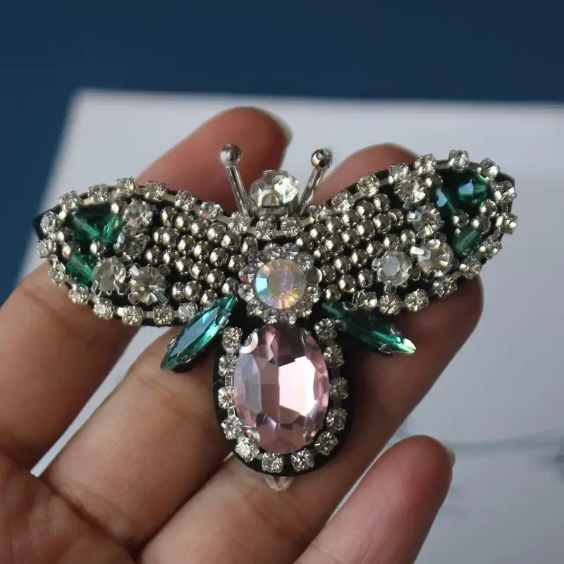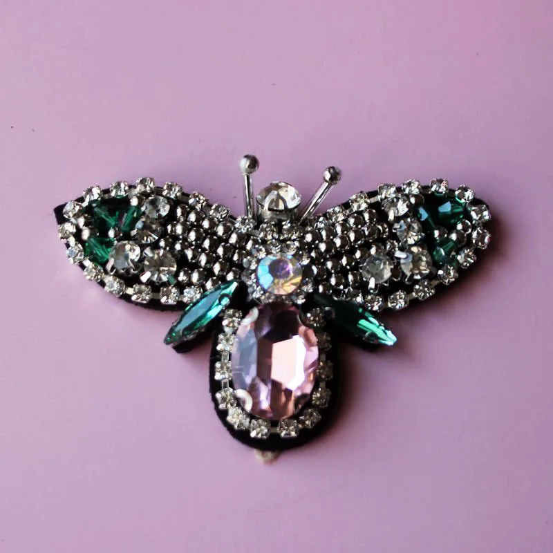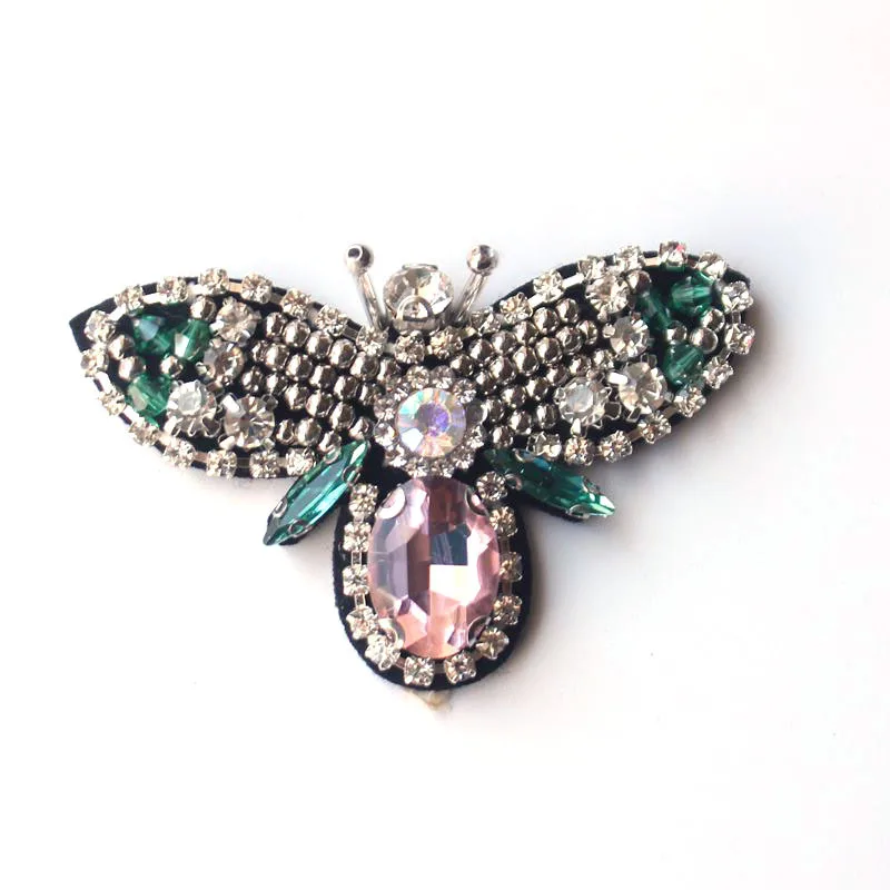Parches de cuentas de abeja de diamantes de imitación de lentejuelas hechas a mano, parche para coser para ropa, apliques de cuentas, parche lindo, costura de ropa con cuentas