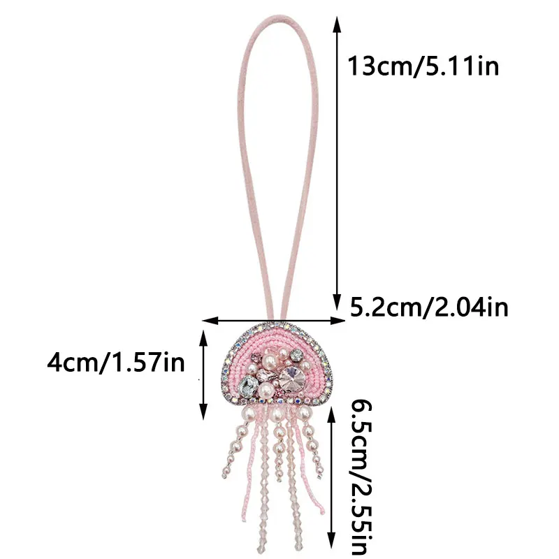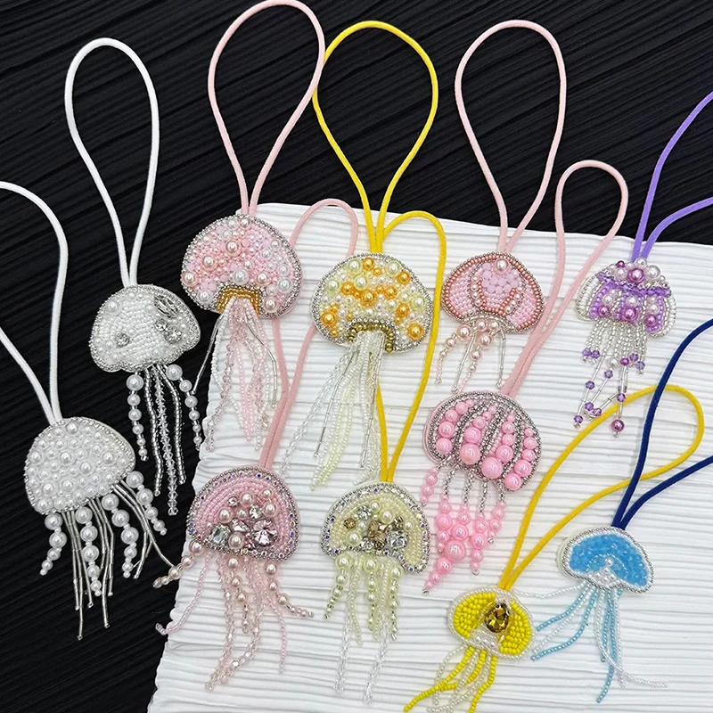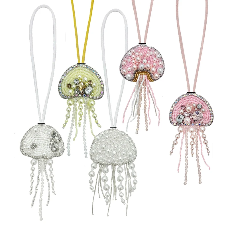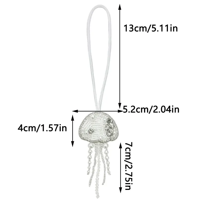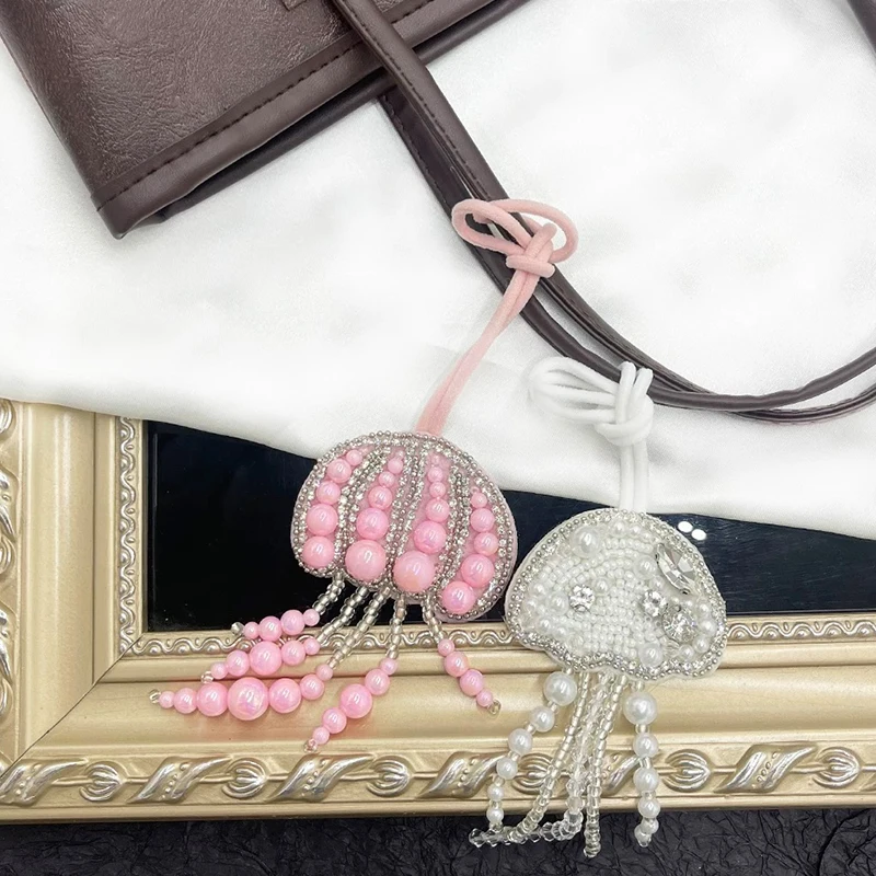 Parches de cuentas de diamantes de imitación hechos a mano en 3D, llavero de cuerda colgante de medusas, cordón de bolsa de cristal, decoración colgante, colgantes para mochila