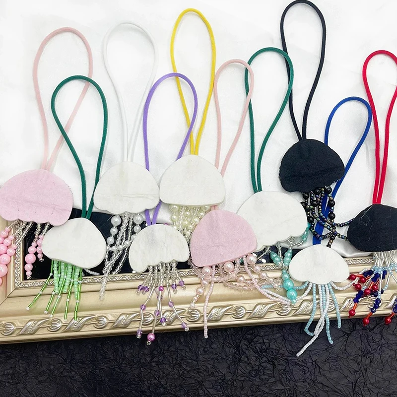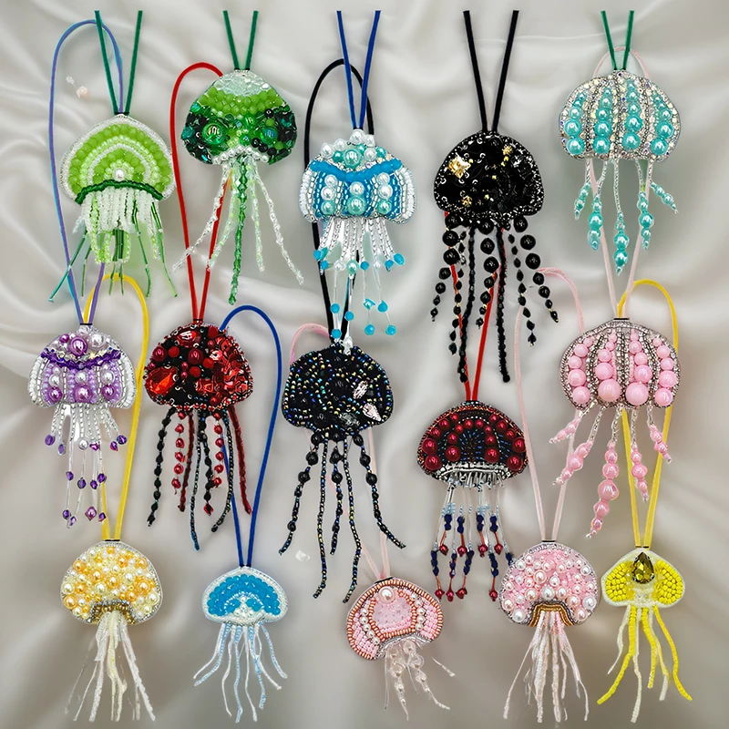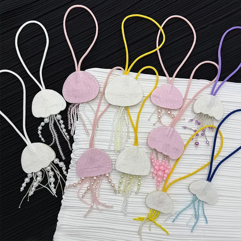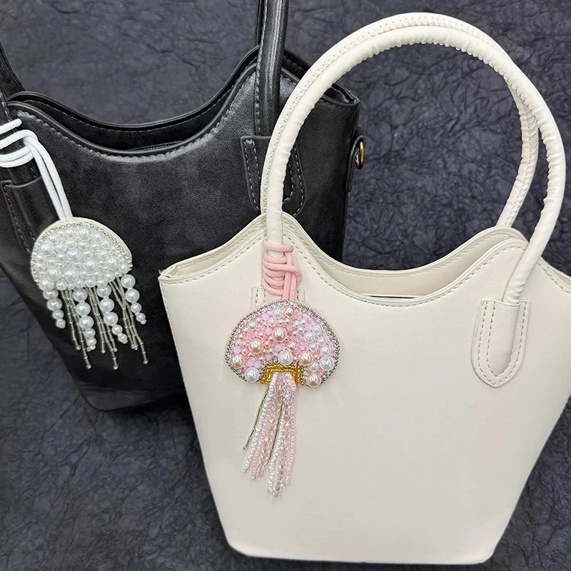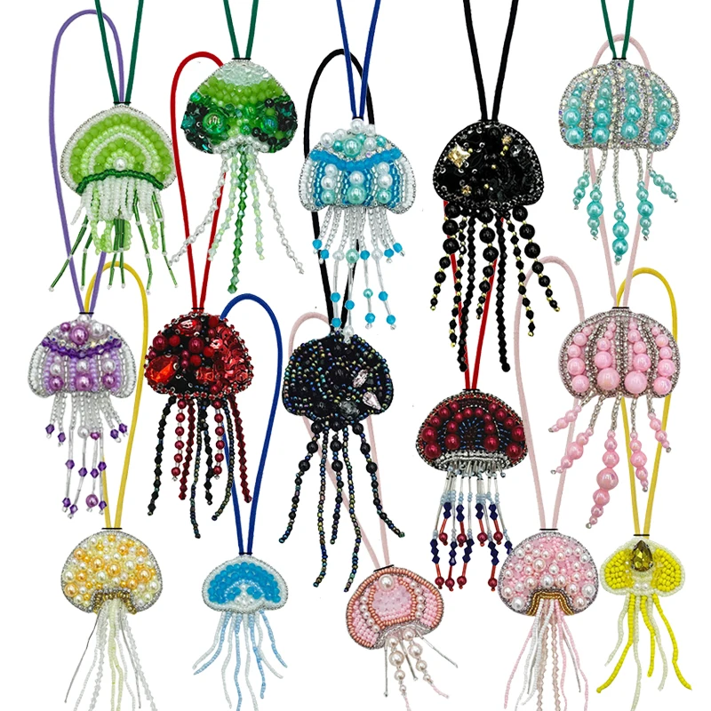 Parches de cuentas de diamantes de imitación hechos a mano en 3D, llavero de cuerda colgante de medusas, cordón de bolsa de cristal, decoración colgante, colgantes para mochila