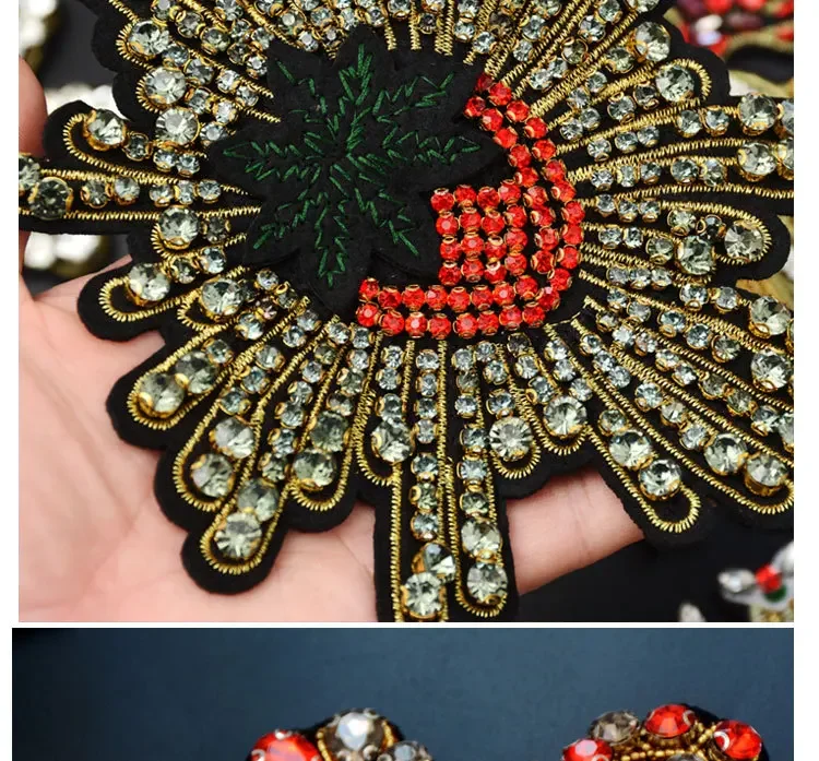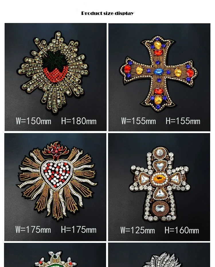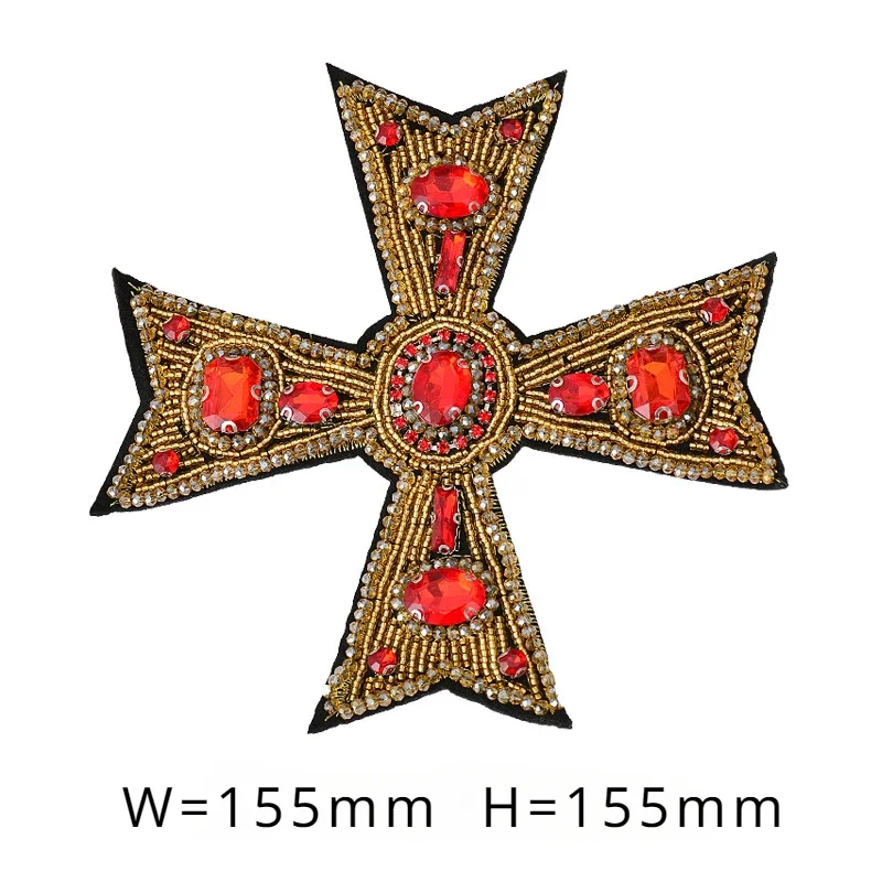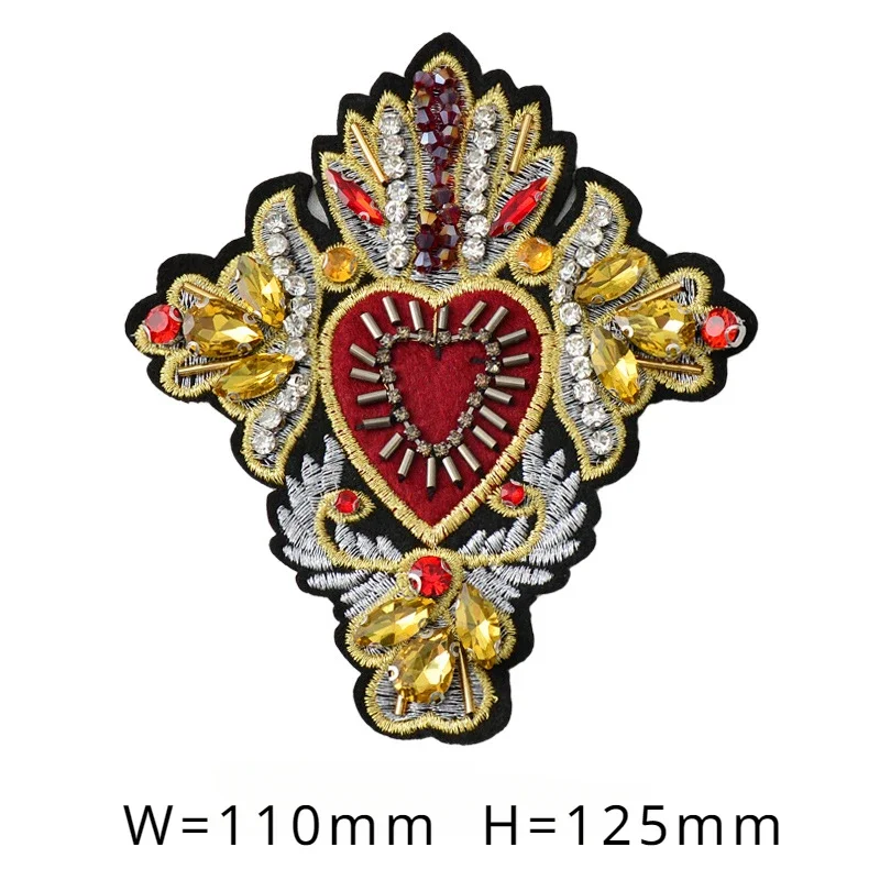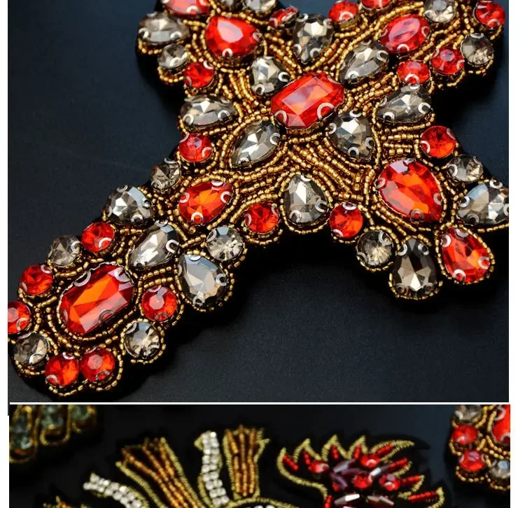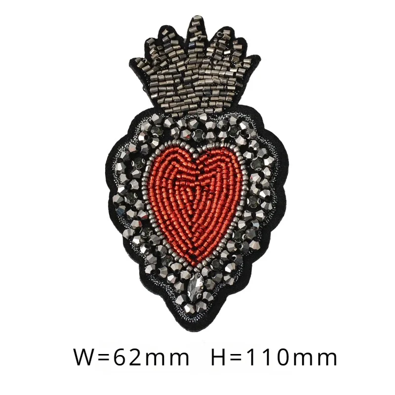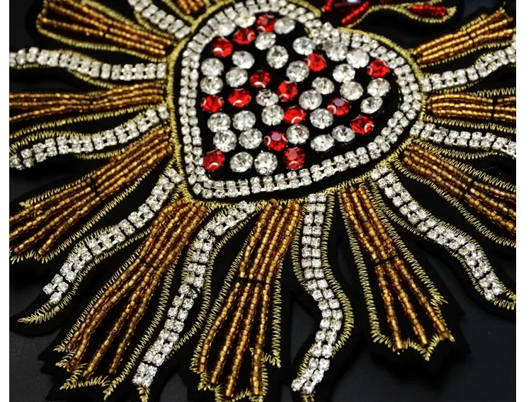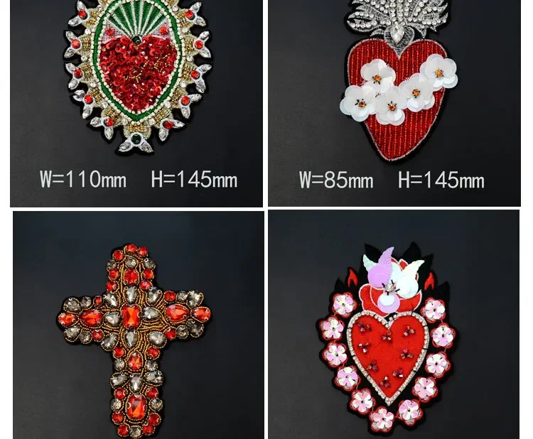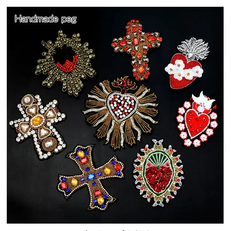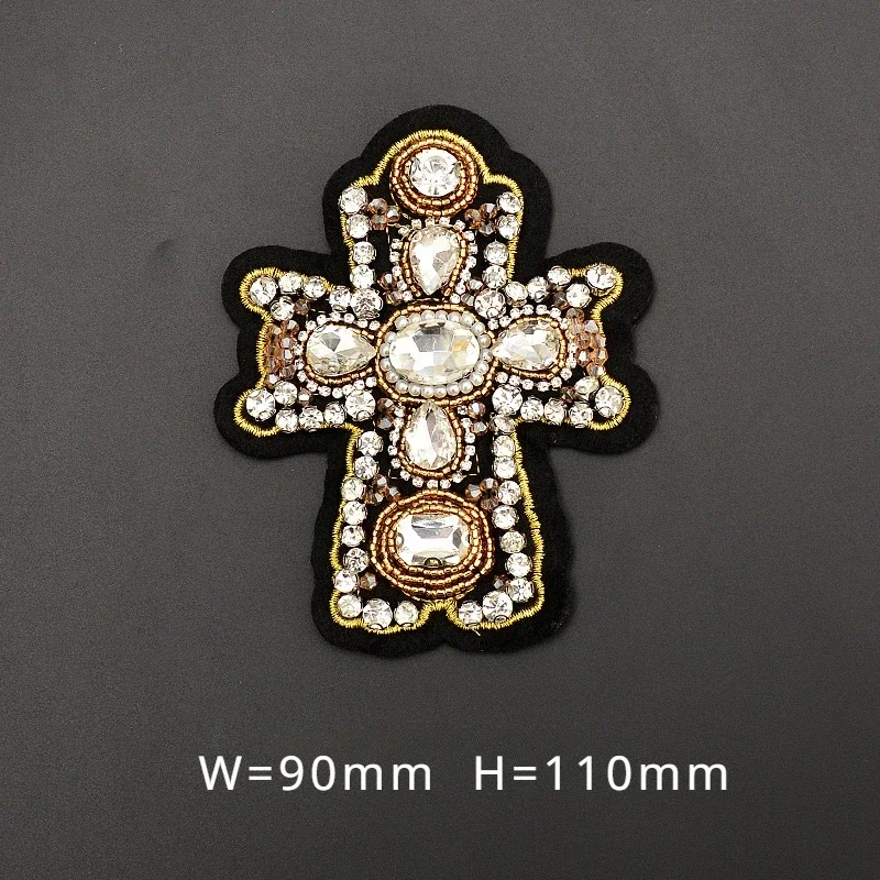 Parches de cuentas de diamantes de imitación hechos a mano, parche para coser en cruz de corazón grande para ropa, apliques DIY, accesorio decorativo para bolsa de ropa