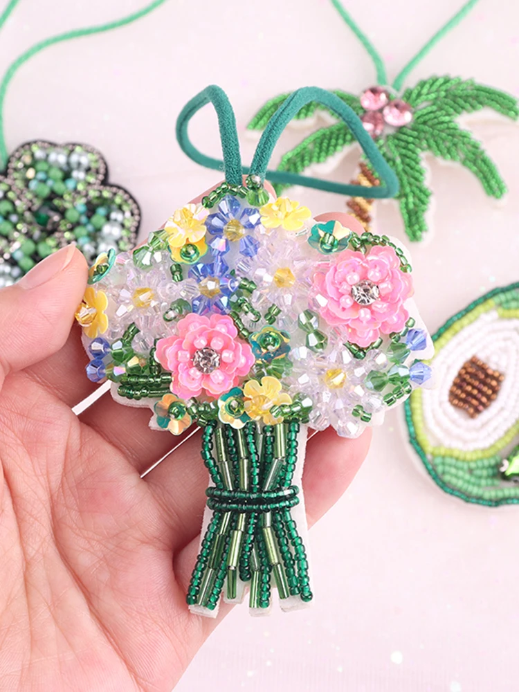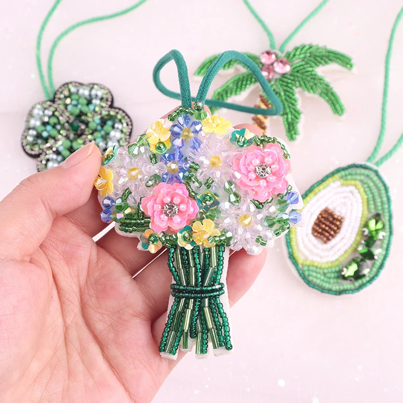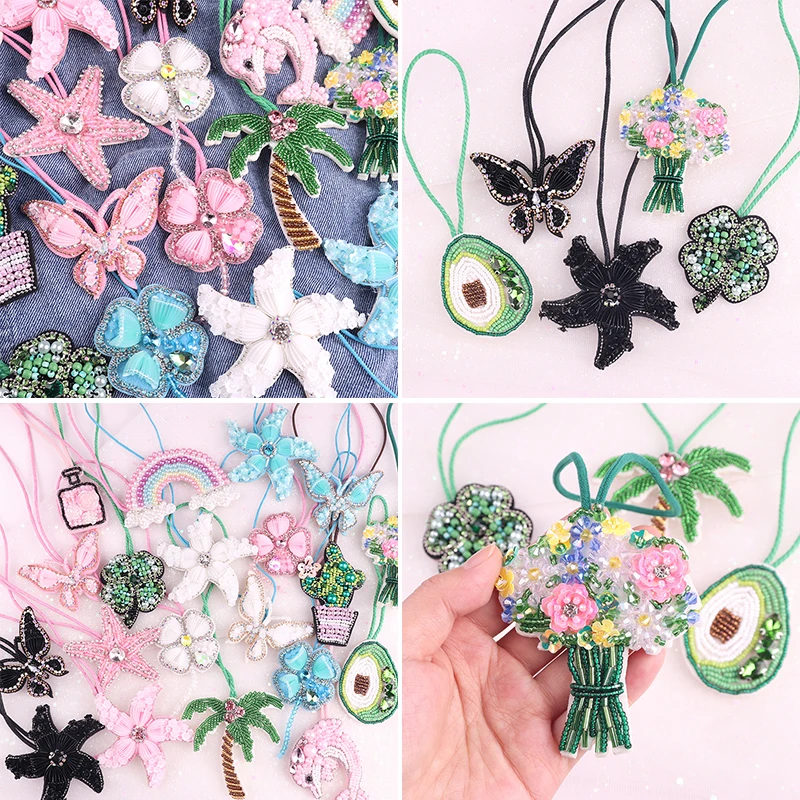Parches de cuentas, dijes en bolsa, llavero de árbol de coco, diamantes de imitación, colgante, joyería de Festival bohemio con decoración de cuerda, regalos DIY