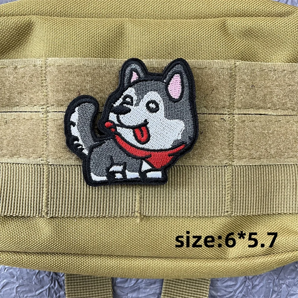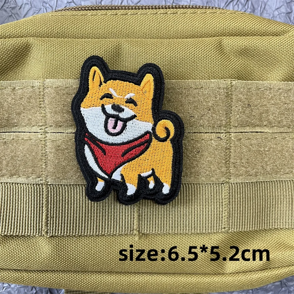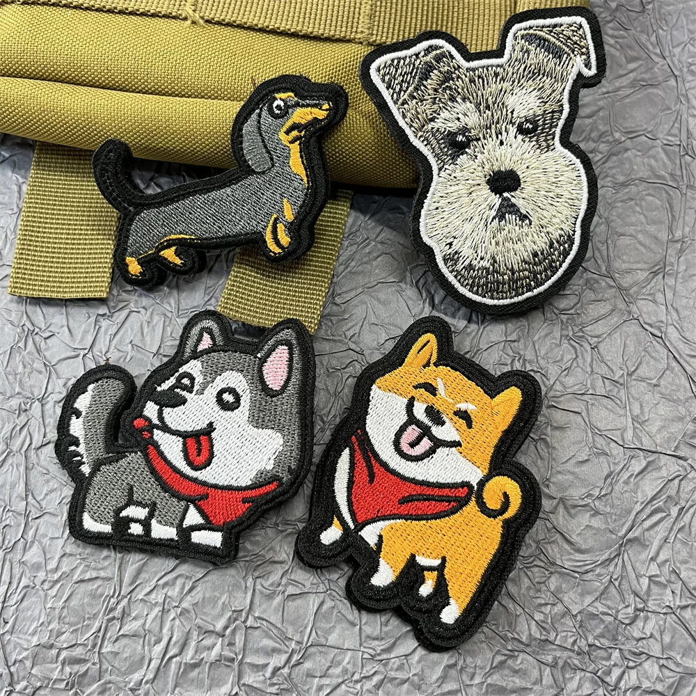 Parches de Anime de perro de dibujos animados, pegatina en ropa, parches bordados de gancho y bucle, mochila, insignias de perros bonitos