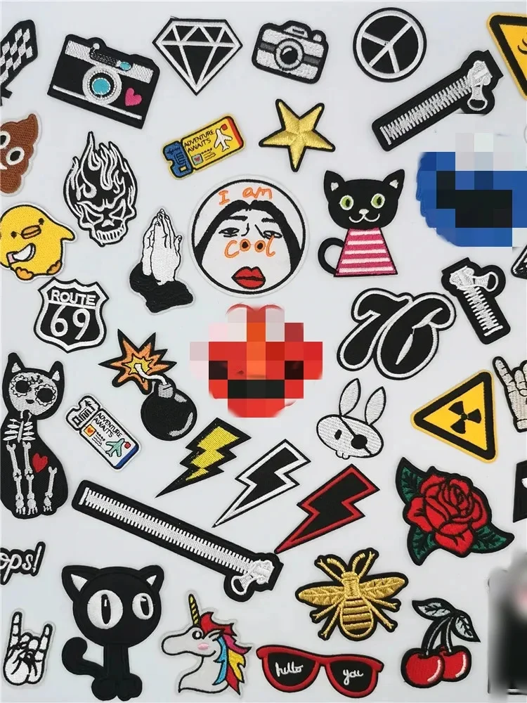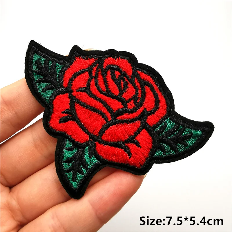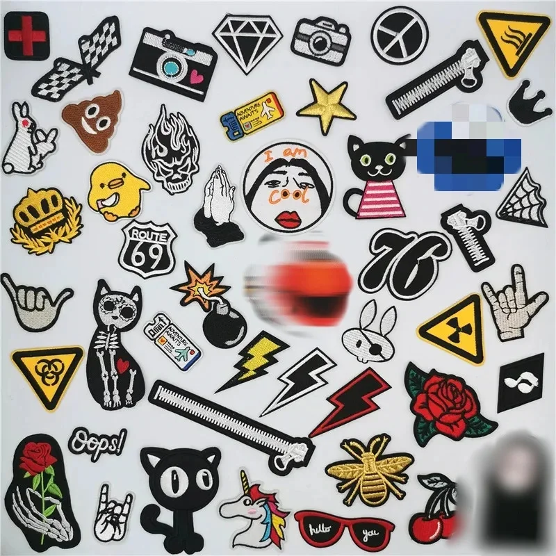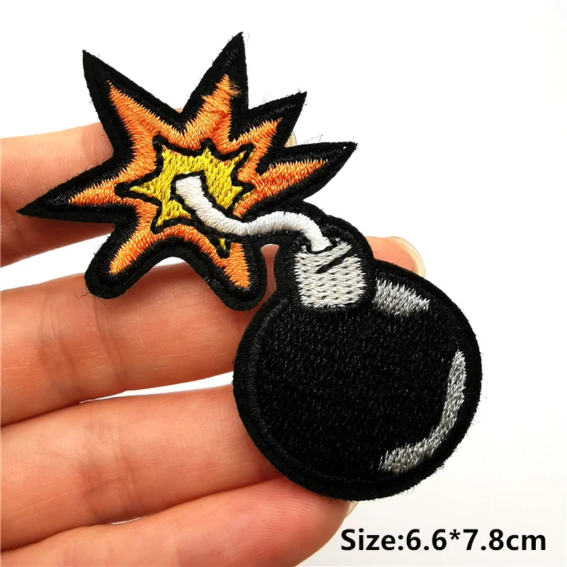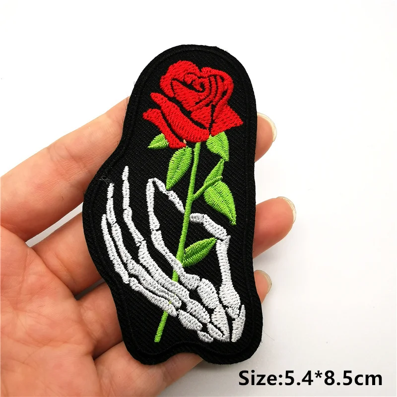 Pequeños parches de dibujos animados en la ropa, apliques de flores bordadas en blanco y negro, pegatinas de planchado de bomba Punk, insignias, transferencias de hierro para ropa