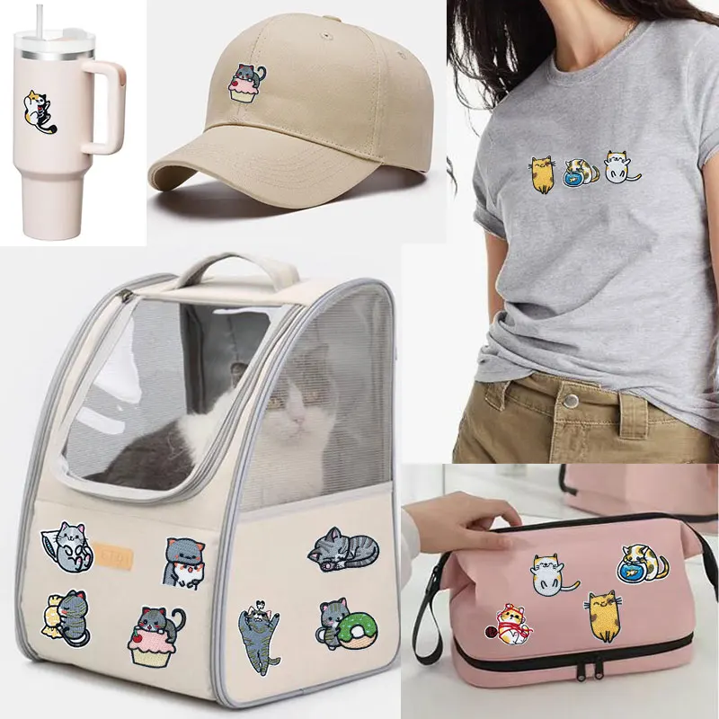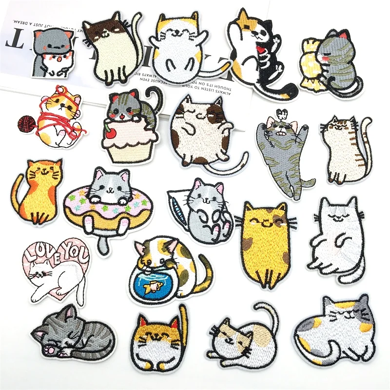 Bonitos parches de gato, apliques de dibujos animados, parches de hierro para ropa, parches bordados de animales en ropa, pegatinas de costura DIY