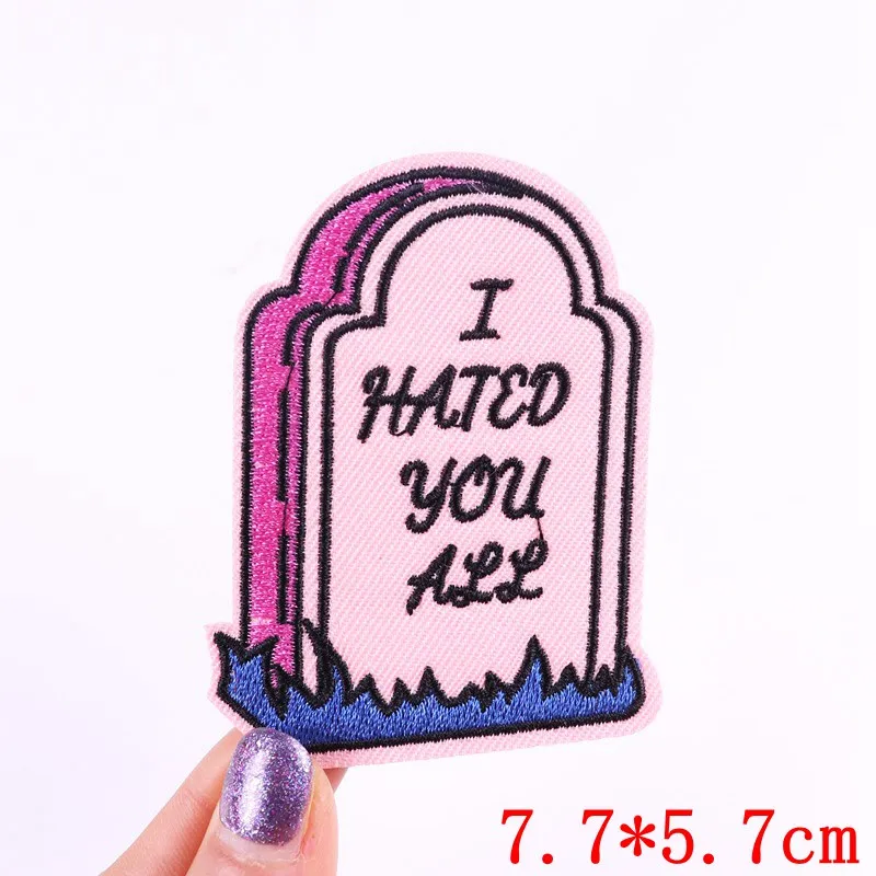 Parches de dibujos animados/letra para accesorios de ropa, pegatinas de tela bordadas para planchar, insignias de precaución, parches para decoración de ropa