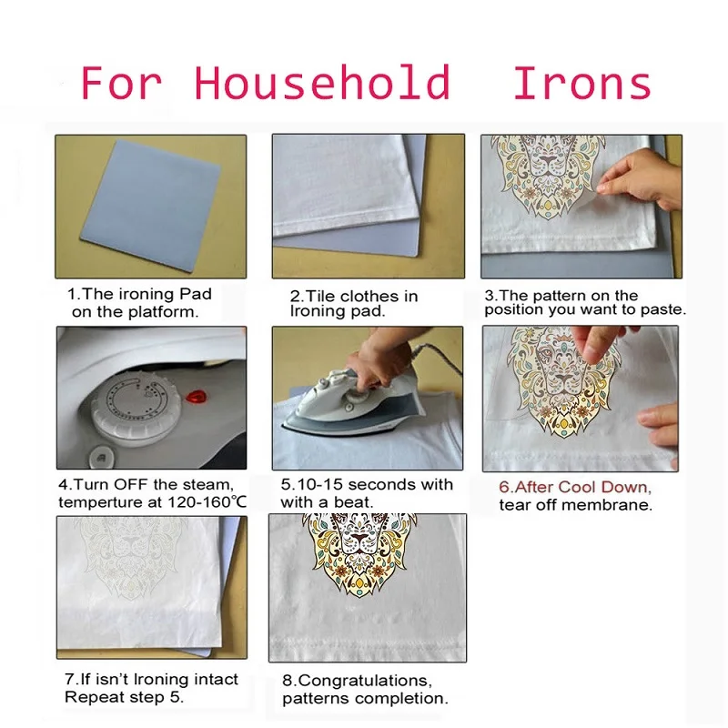 (2). Limpie la parte que va a ser planchada. Ponga el parche en la parte correcta. Ponga el lado con el sellado térmico directamente en los pantalones.