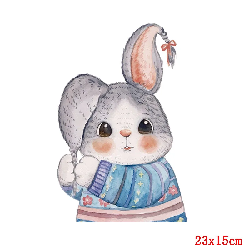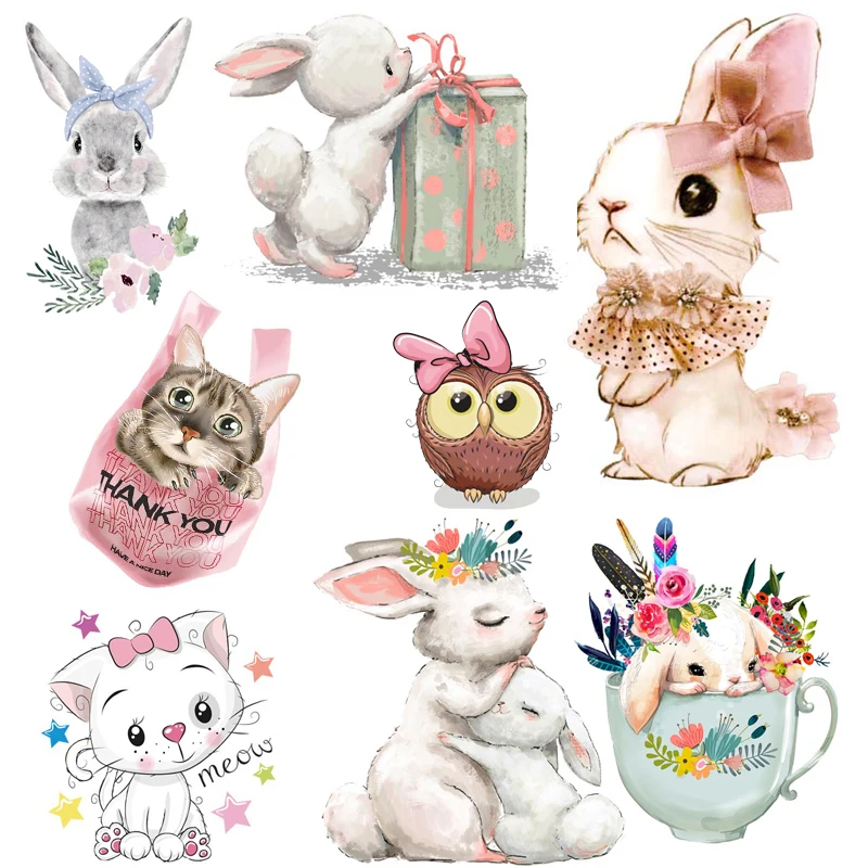 Lindos animales conejo hierro en transferencia de calor vinilo Transferencia de Calor térmica parches de dibujos animados para ropa DIY pegatinas en ropa de chico