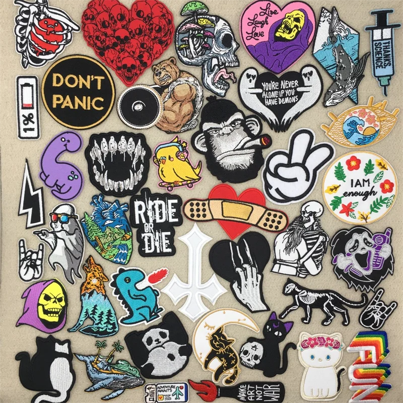 Parches de ropa de Anime divertido, parche de costura Punk, ganchos de ropa de costura, pegatina, chaqueta, parche bordado de calavera de dibujos animados DIY