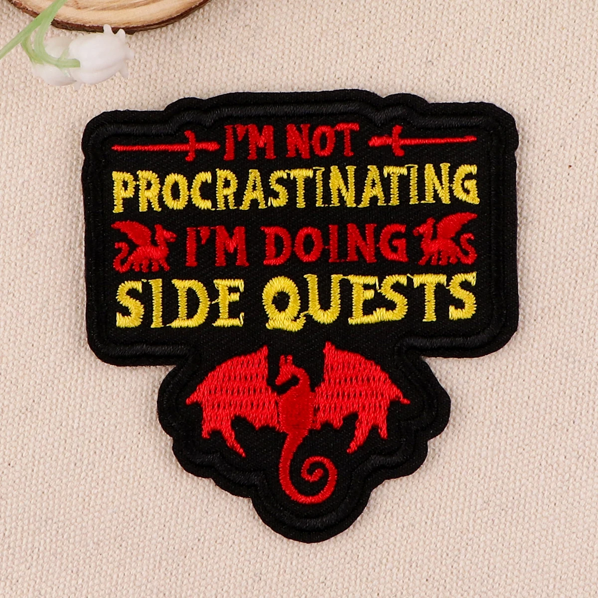 Hay pegamento en la parte posterior, que se puede planchar o coser.