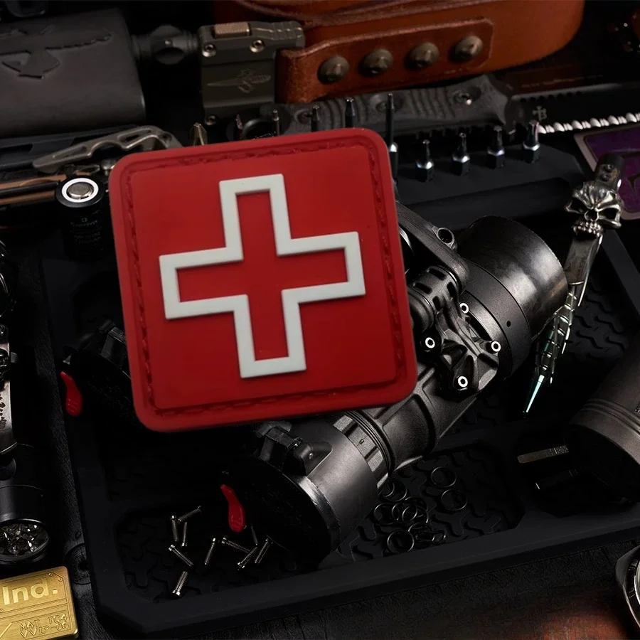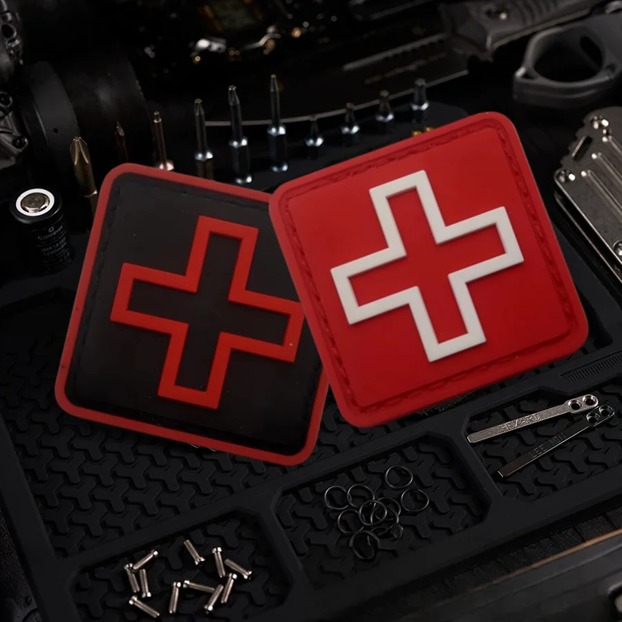 Parches de emergencia médicos 3D de PVC, rojo, blanco y negro, insignia militar de moral cruzado, pegatinas tácticas de gancho y bucle, parche de costura para ropa