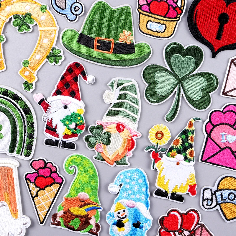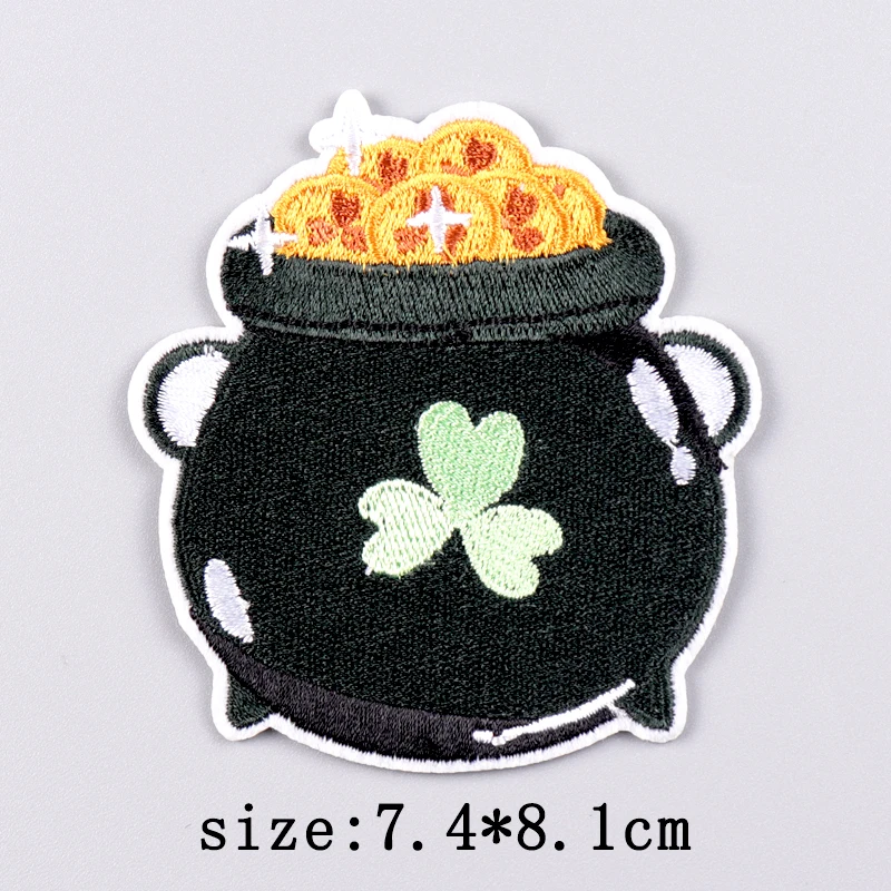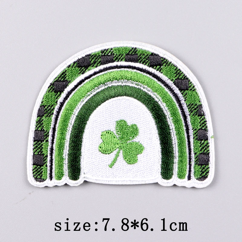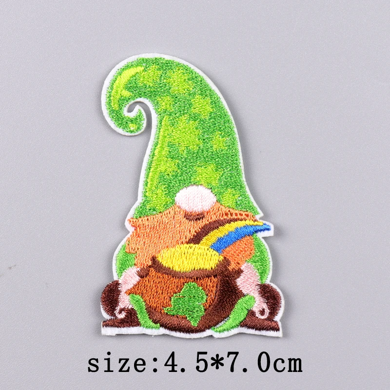 Parche enano para planchar, parches para ropa, parches bordados en la ropa de trébol, parche bordado del Día de Spatrick, insignias de bucle de gancho