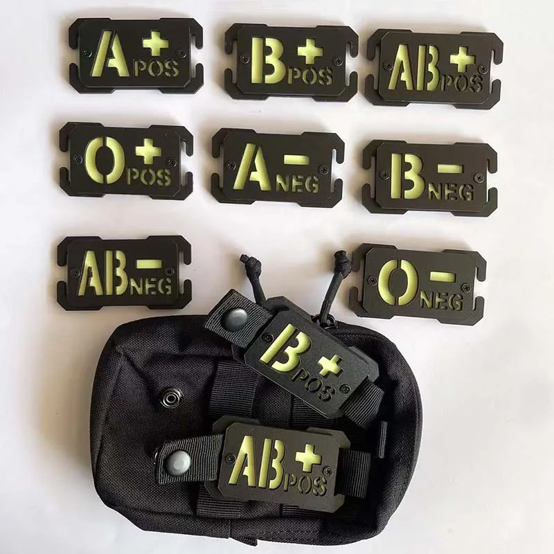 Parches de equipo táctico de insignia de reconocimiento al aire libre luminosa tipo sangre, emblema uniforme de sujeción de aplique de accesorio de mochila