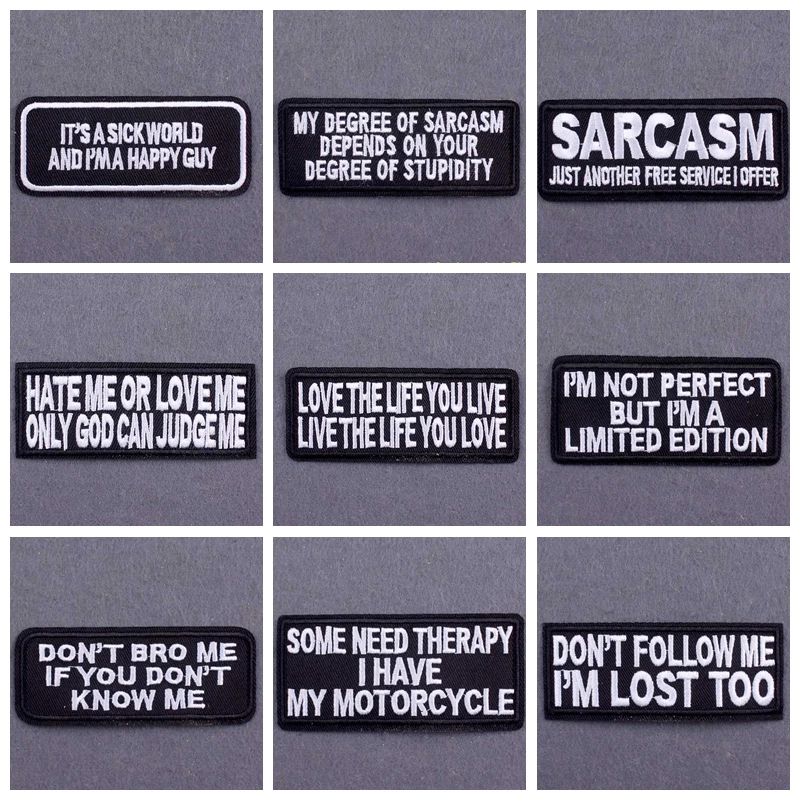 10 unids/lote de parches con eslogan en la ropa DIY rayas blancas y negras ropa parches termoadhesivos parche bordado en la mochila