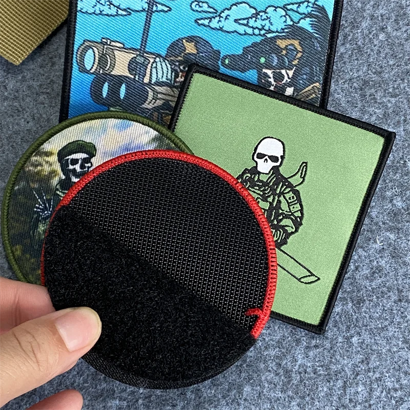 Parches estampados de la serie Skull Soldier "Border Guard Service", insignia de moral táctica, brazalete con gancho y lazo, mochila, pegatinas para ropa