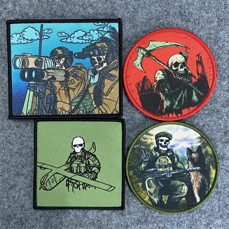 Parches estampados de la serie Skull Soldier "Border Guard Service", insignia de moral táctica, brazalete con gancho y lazo, mochila, pegatinas para ropa