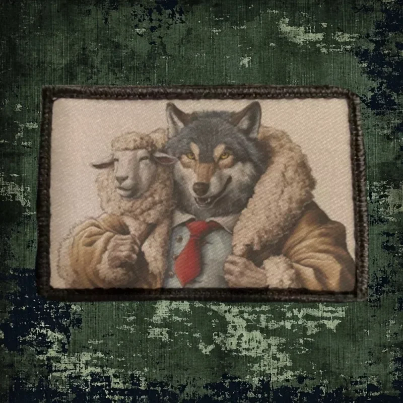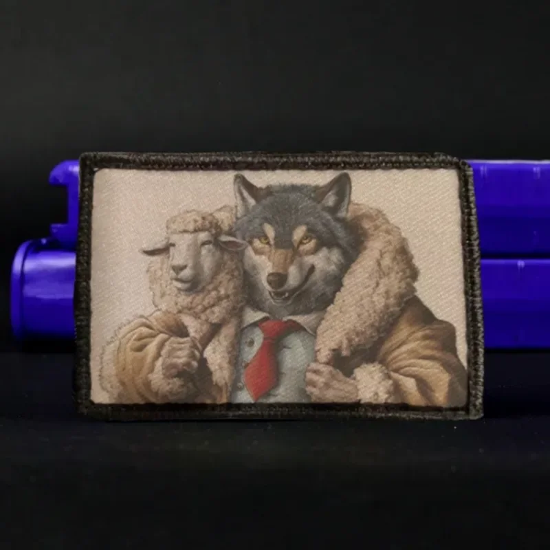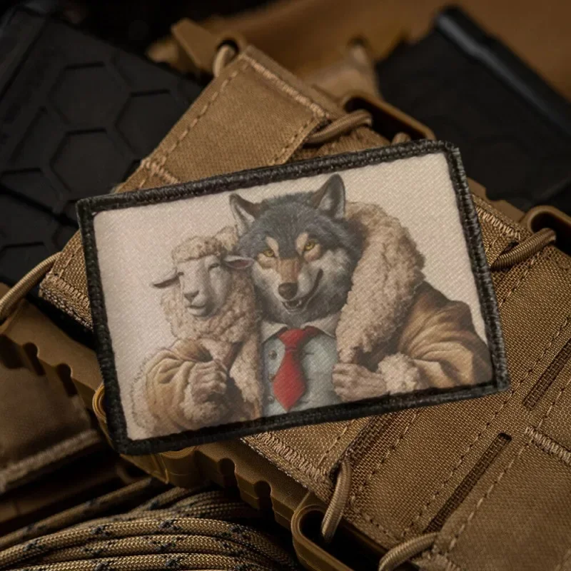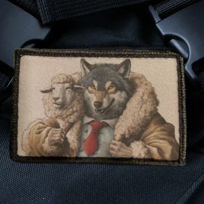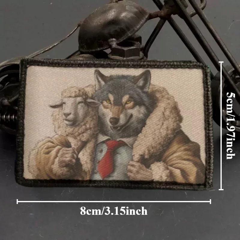 Parches estampados de lobo de dibujos animados en ovejas, parche de gancho y bucle para brazalete en ropa, insignia de moral militar, pegatinas tácticas para mochila