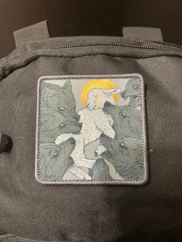 Parches impresos de oveja y lobo, insignia de moral divertida "El cordero", brazalete de combate de lobo militar, emblema de gancho y bucle, pegatinas para mochila