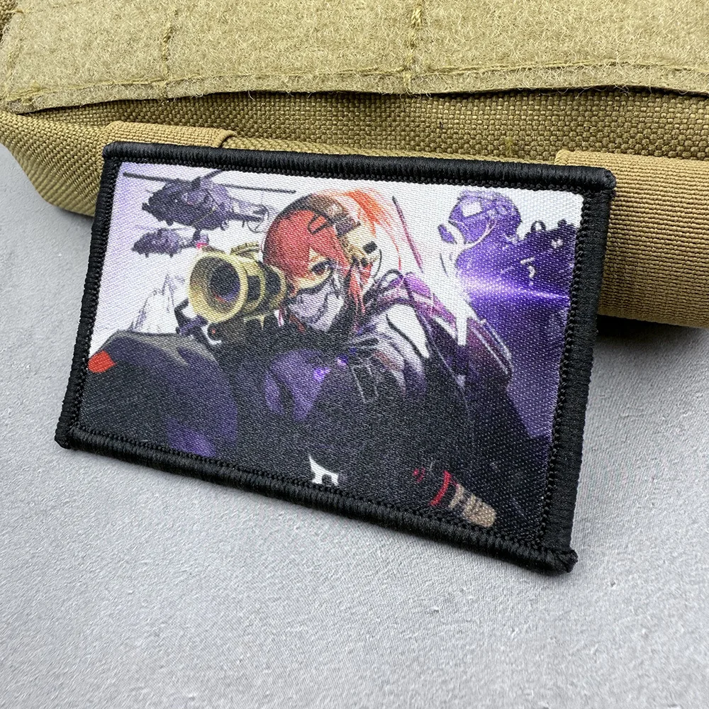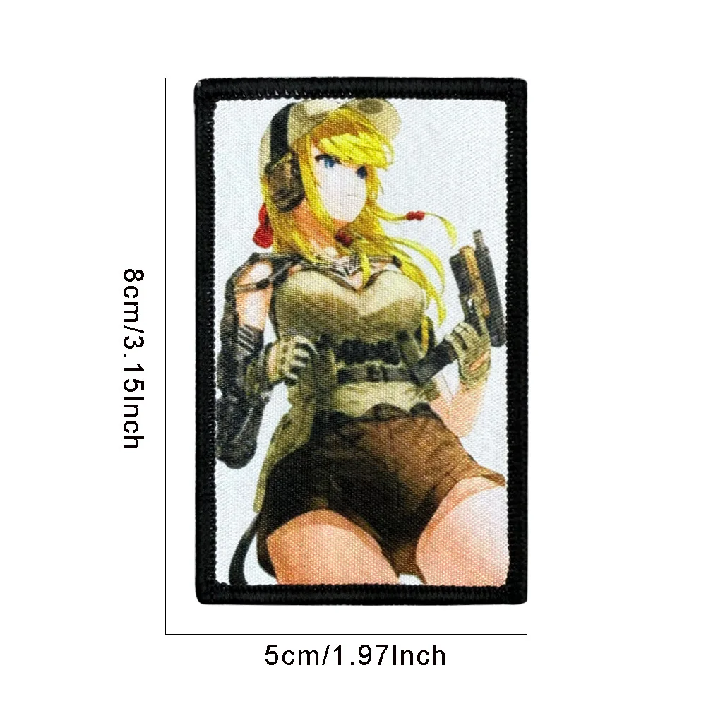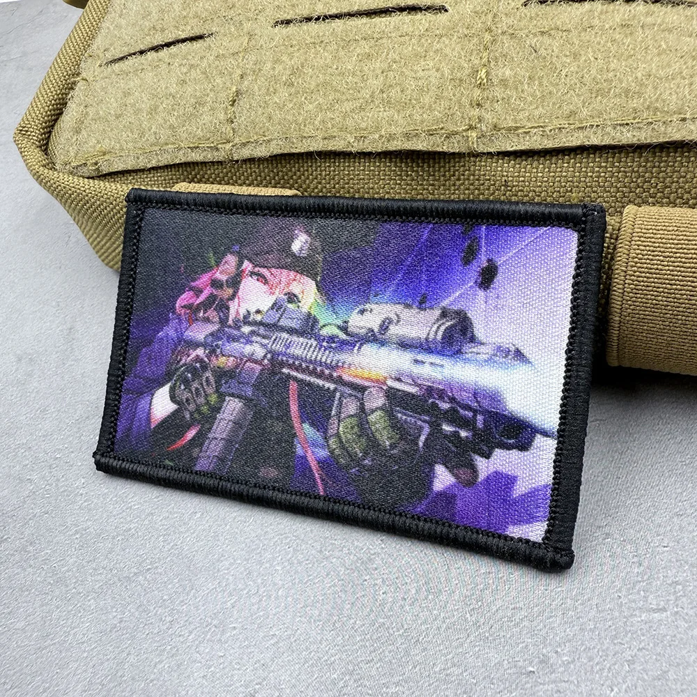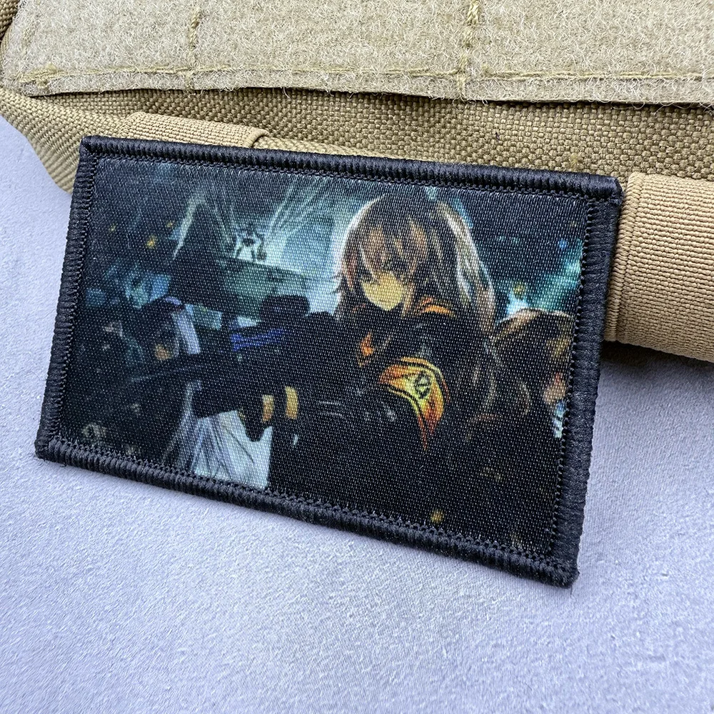 Parches frontales bidimensionales de Anime para chica, insignia táctica con impresión UV de brazos de combate para brazalete DIY, ropa, decoración de mochila