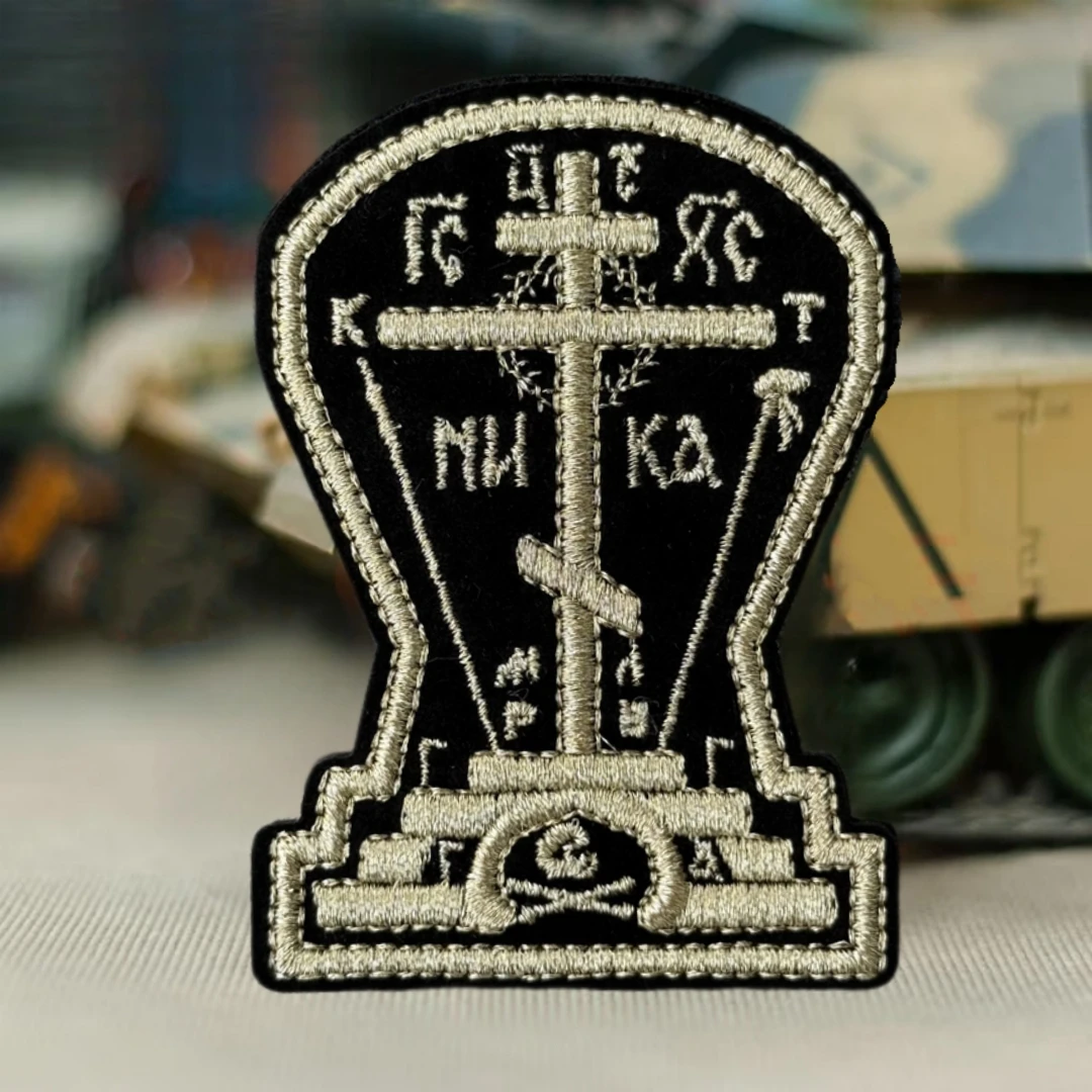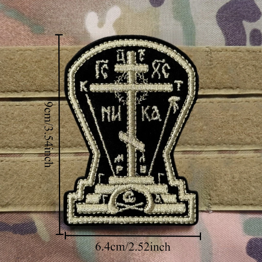 Parches de gancho y bucle bordados con cruz ortodoxa para ropa, brazalete táctico militar del ejército, pegatina de embalaje trasero para exteriores