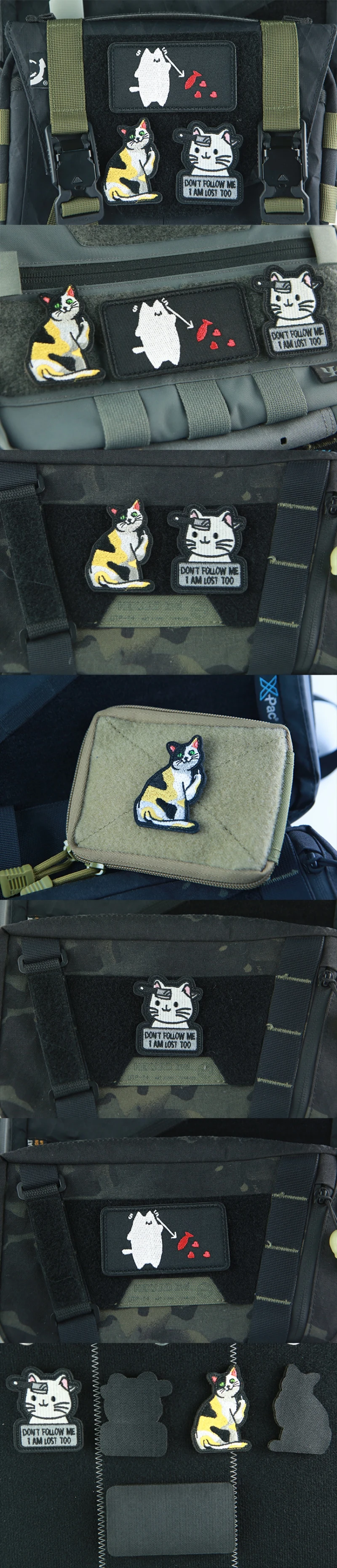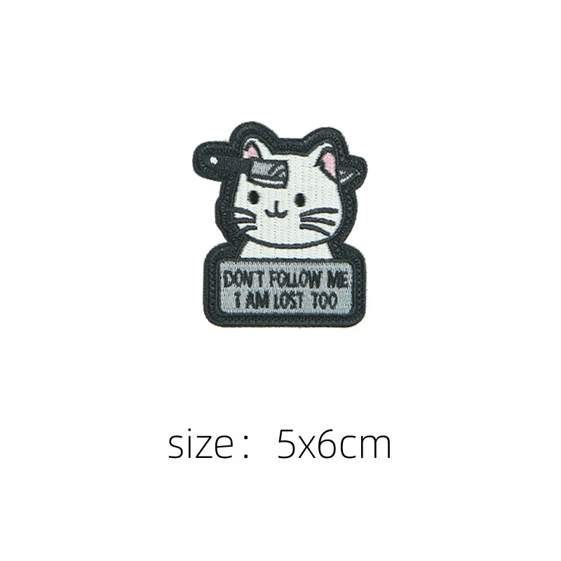 Parches bordados de gancho y bucle de gato de tres flores, accesorio táctico, tenedor, pez, gato, insignia de moral, mochila DIY, pegatina decorativa