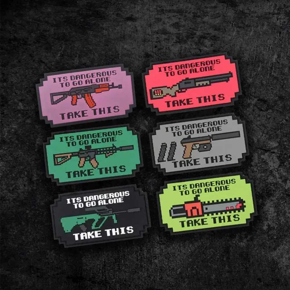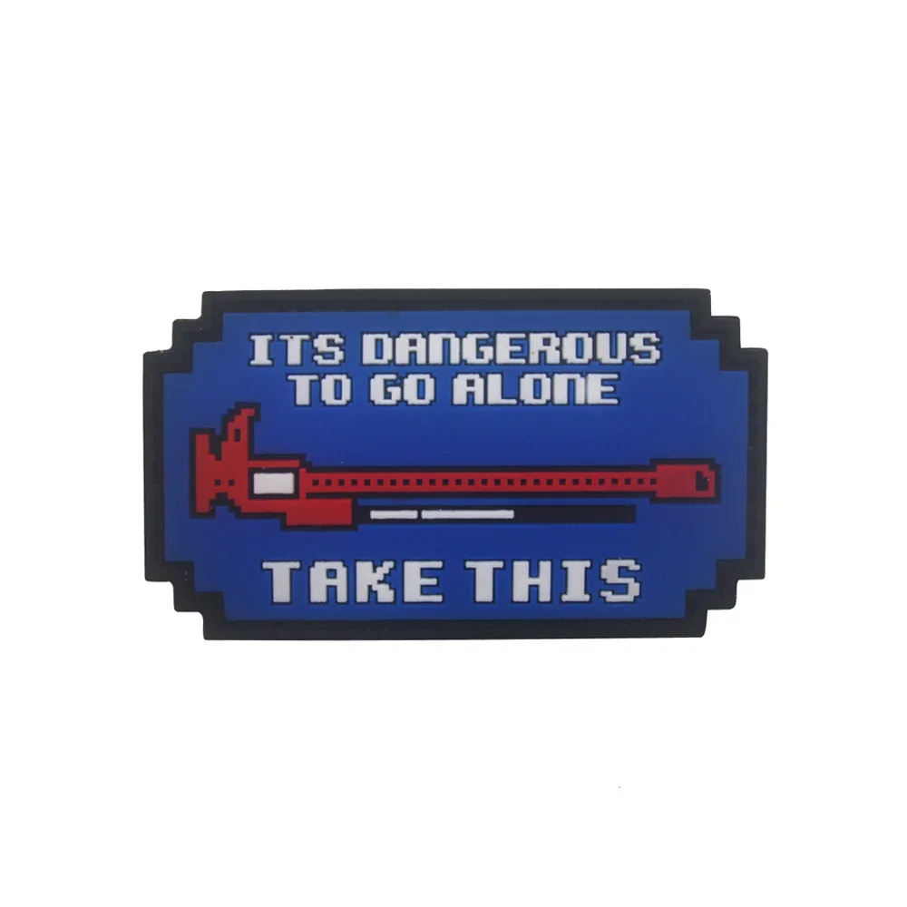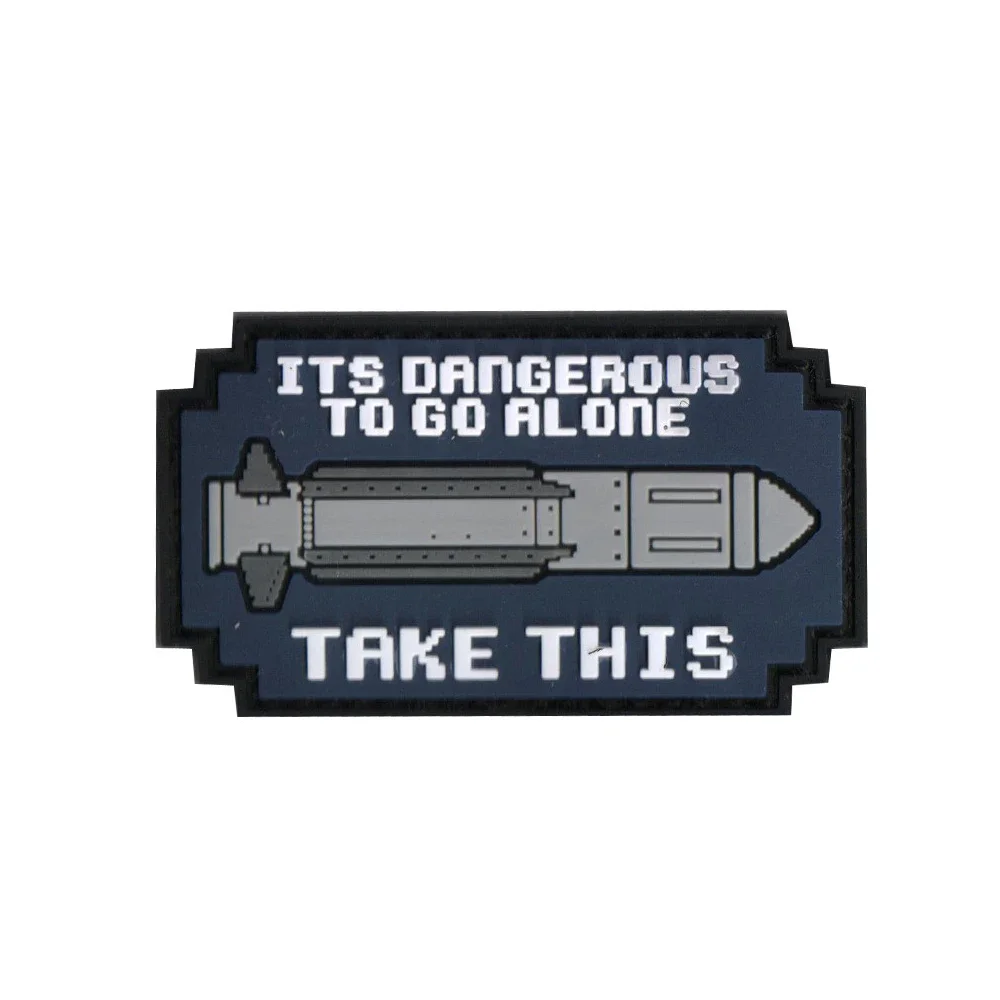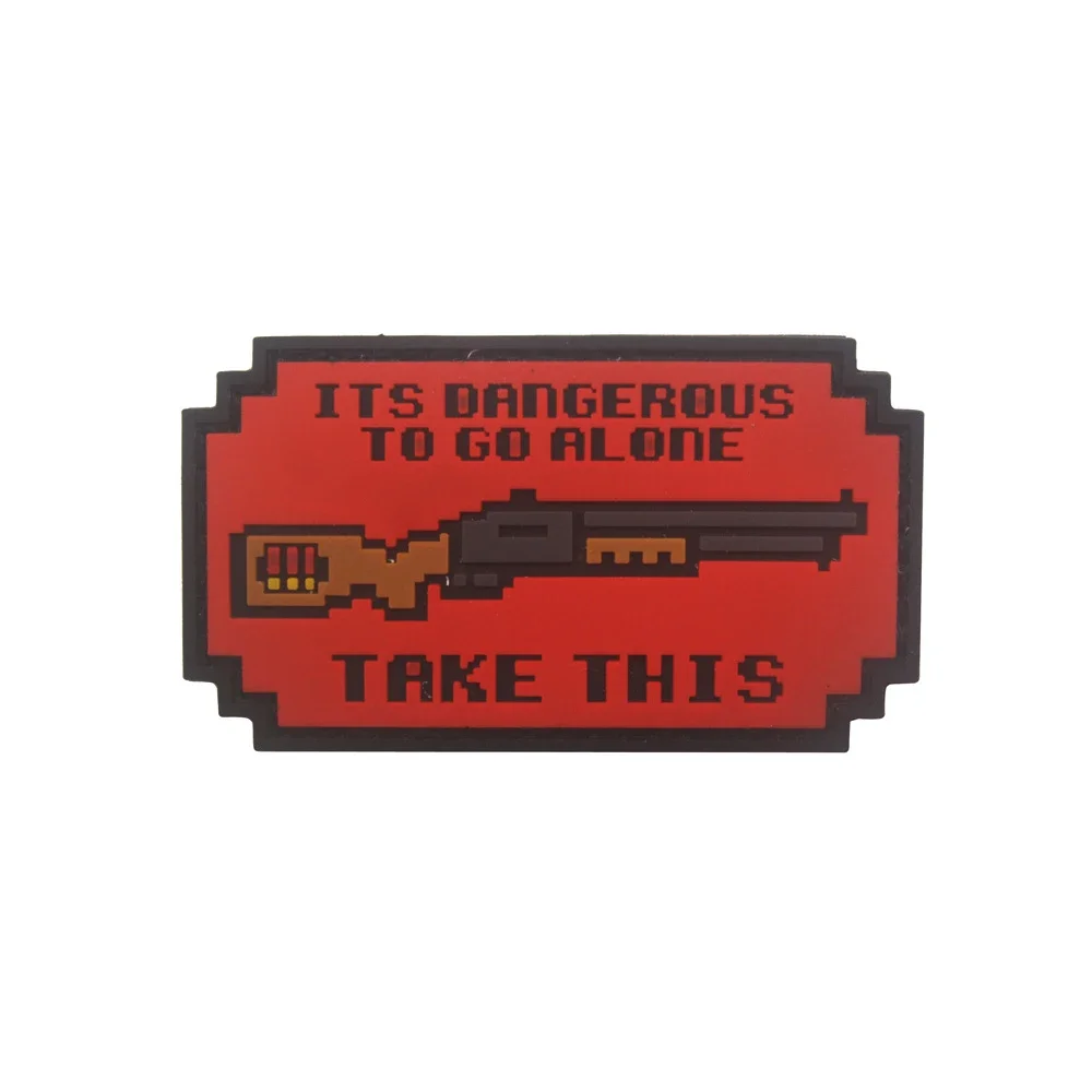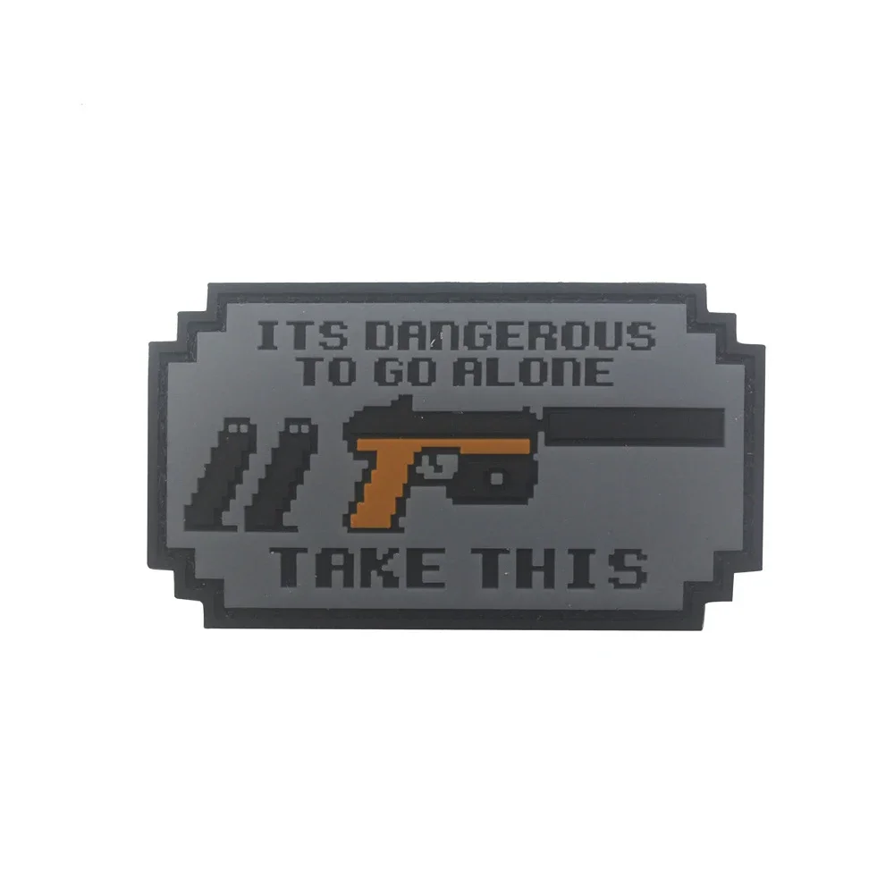Parches de gancho y bucle de arma versión Q de PVC, es Dangerous Go Alone, tome esta insignia de moral táctica en la mochila, parche adhesivo de sombrero