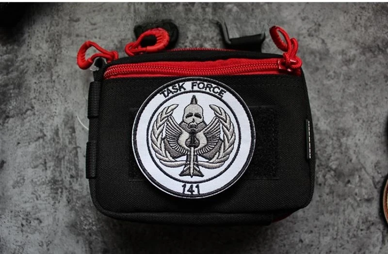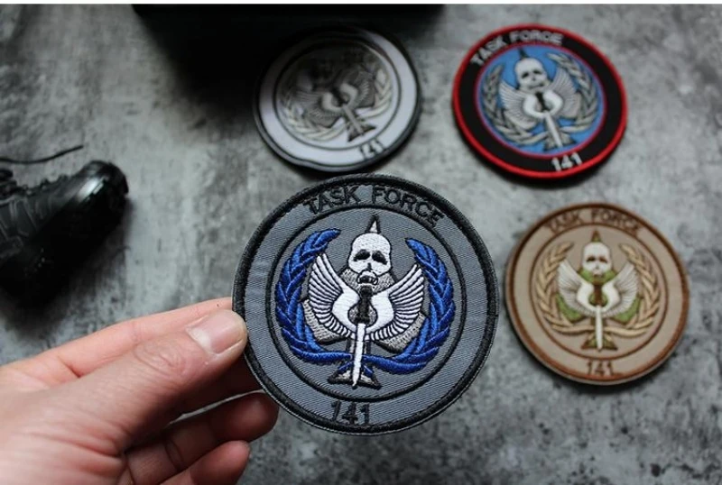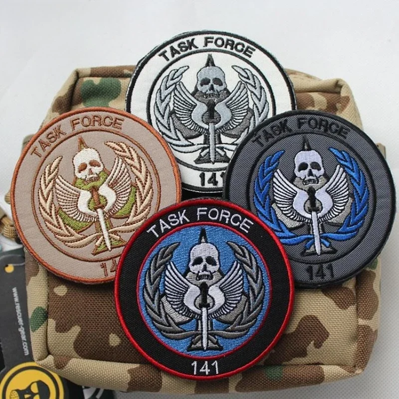 Parches de gancho y bucle bordados de calavera, código táctico TASK FORCE 141, brazalete de llamada de servicio, insignia de moral, pegatinas para mochila