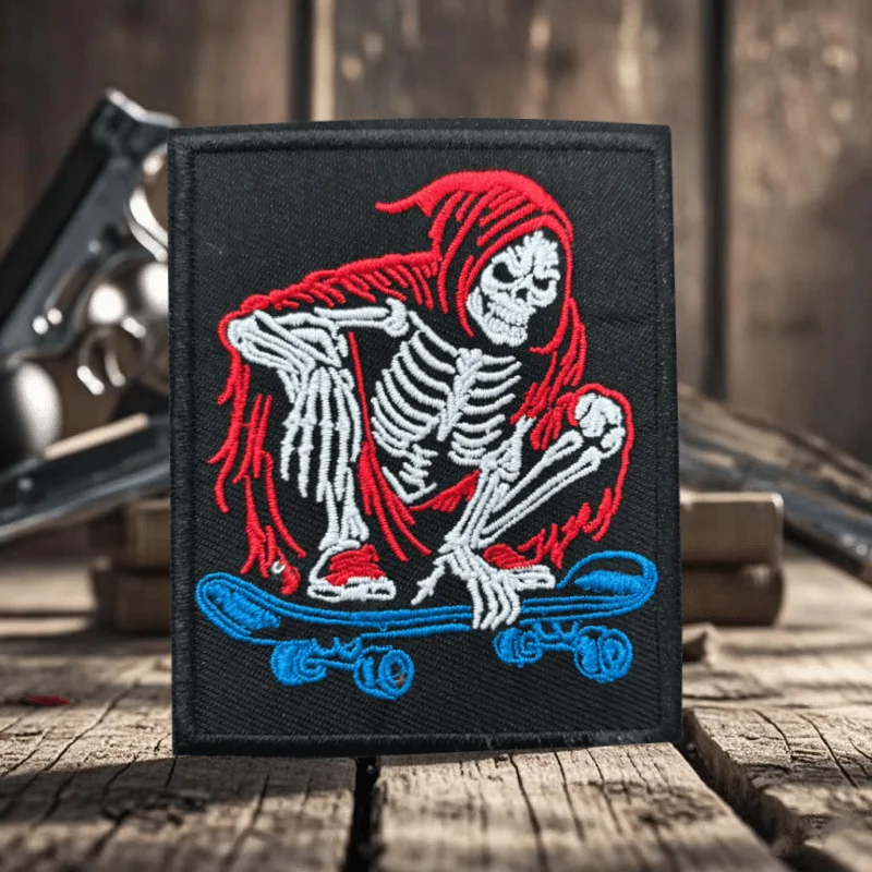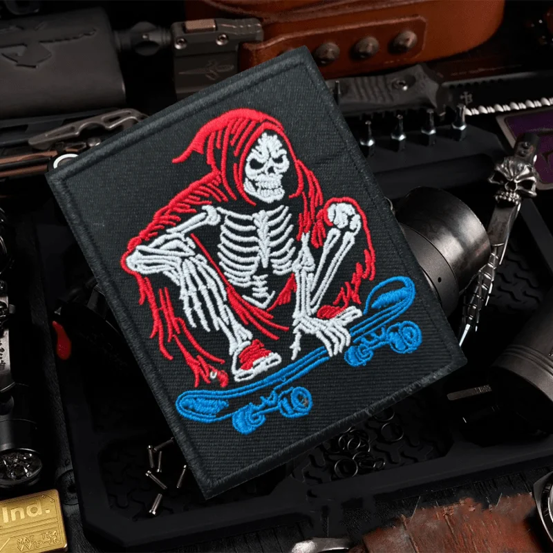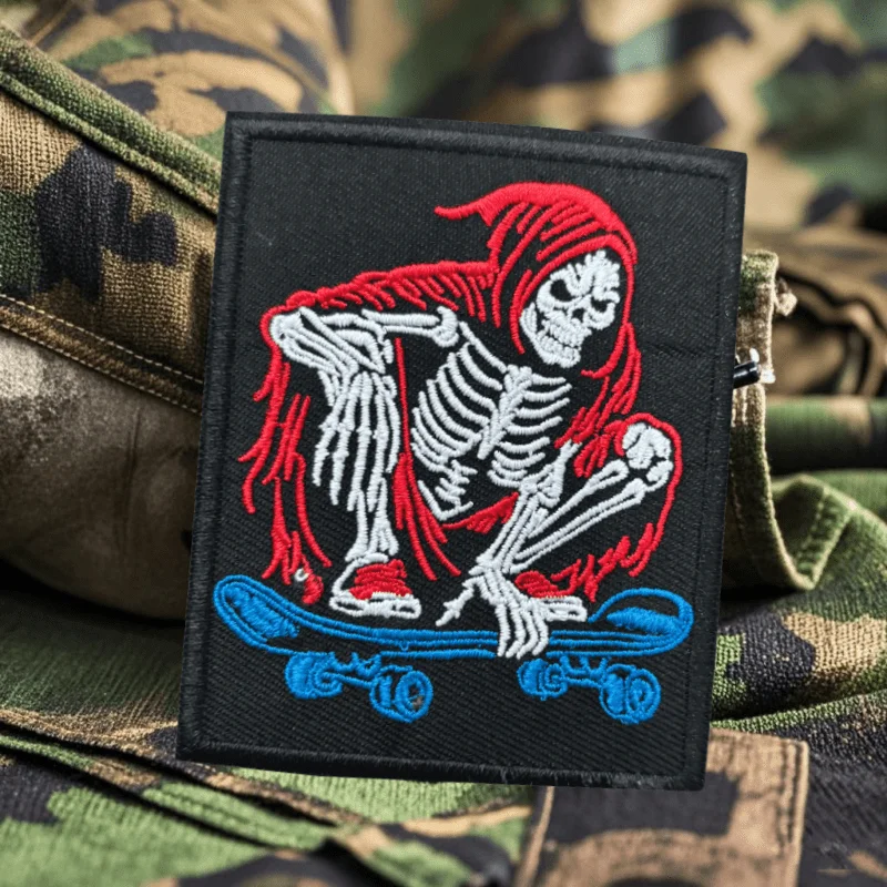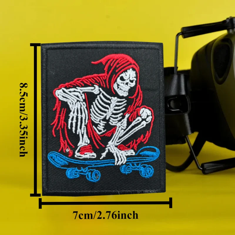 Parches de gancho y bucle bordados de calavera para monopatín, insignia de moral táctica, brazalete militar, pegatinas para ropa y mochila
