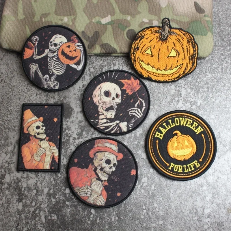 Parches bordados de gancho y bucle para Halloween con noche de calabaza, insignia de moral de calavera, mochila, uniforme de béisbol, pegatina decorativa con estampado
