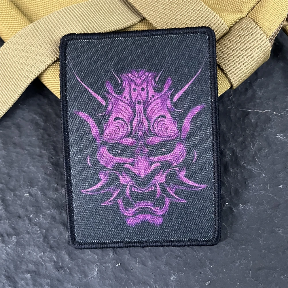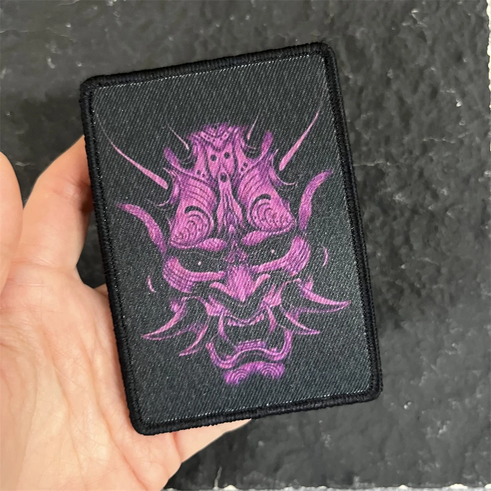 Parches de gancho y bucle con estampado de Anime japonés, insignia de moral táctica, brazalete de demonio Onni, pegatina decorativa para mochila