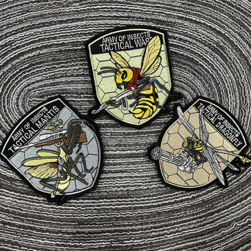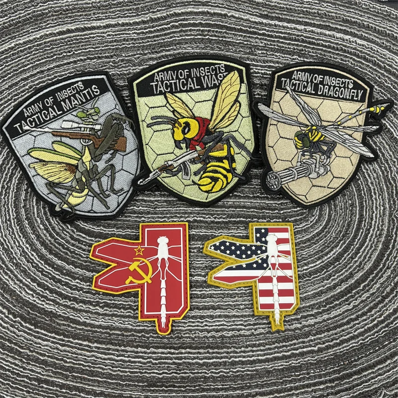Parches de gancho y bucle de libélula táctica de PVC, equipo al aire libre, insignia de moral de jungla de camuflaje para ropa, aplique de mochila