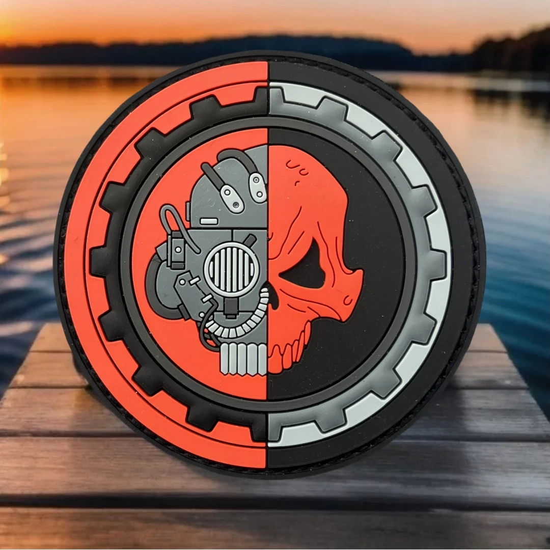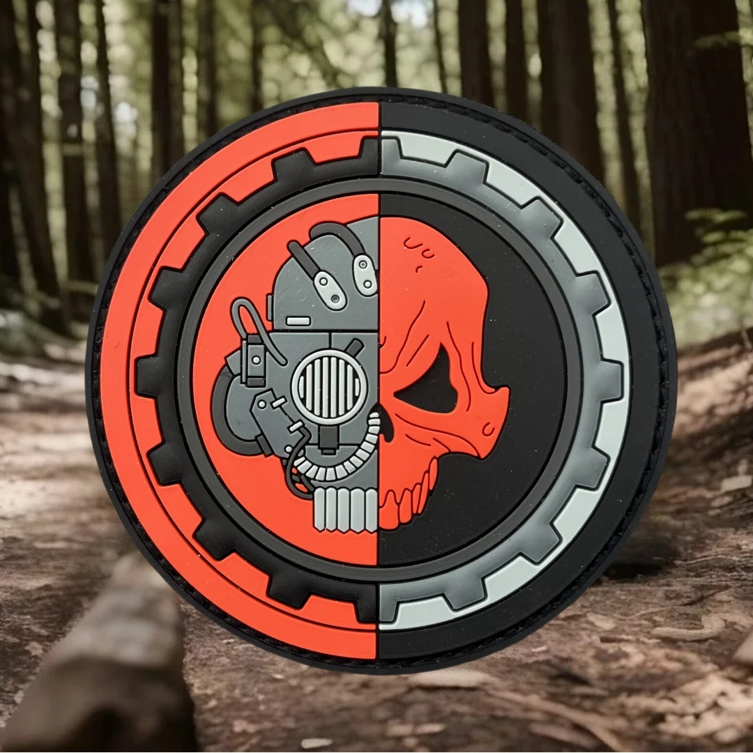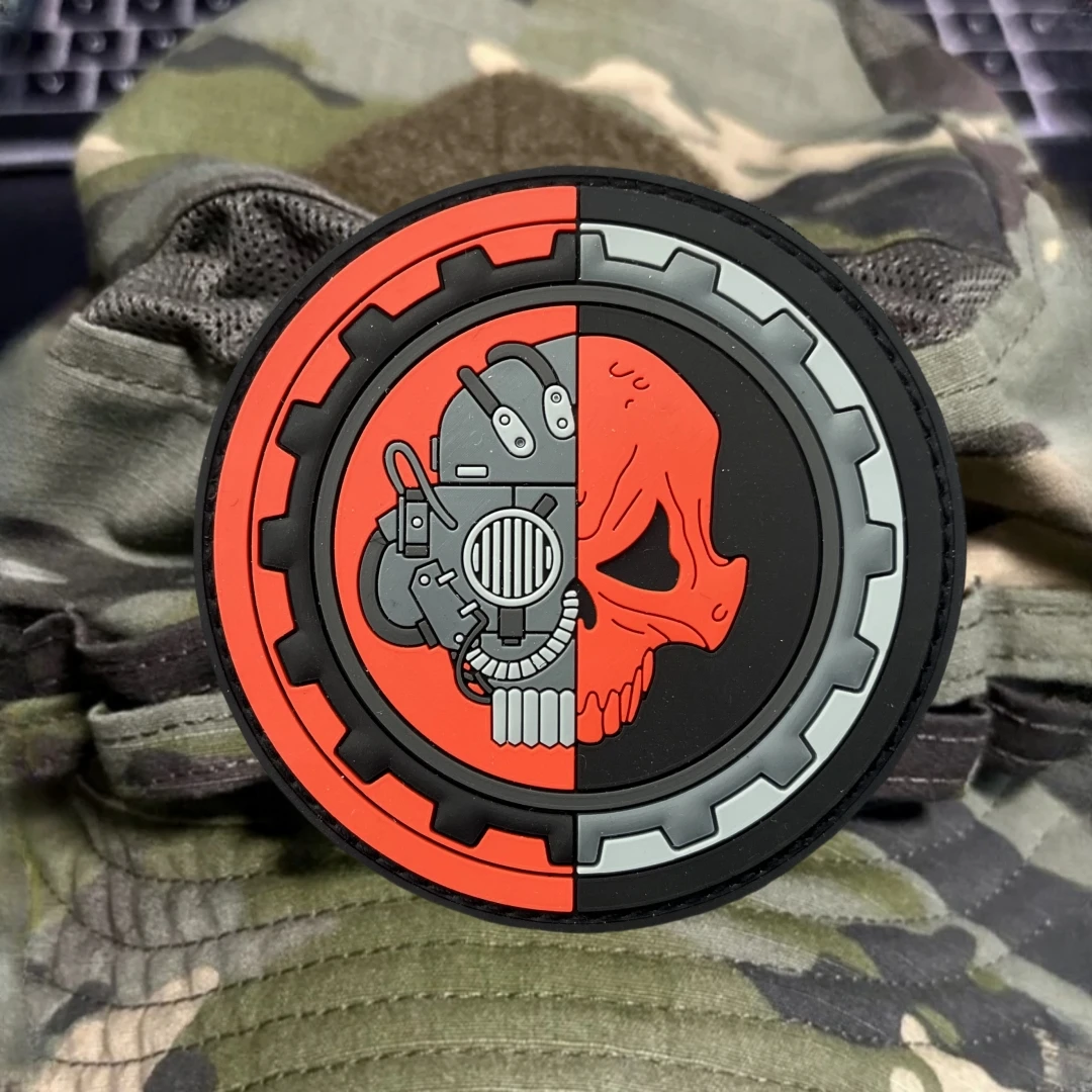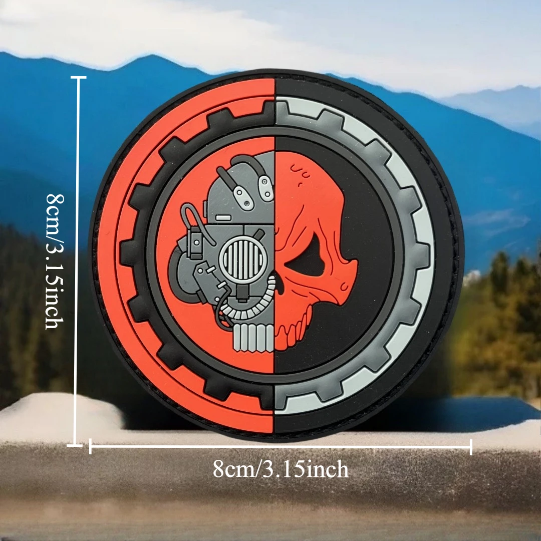 Parches de gancho y bucle de PVC con calavera mecánica de veterano para ropa, brazalete del ejército militar, pegatina para mochila, insignia de moral táctica