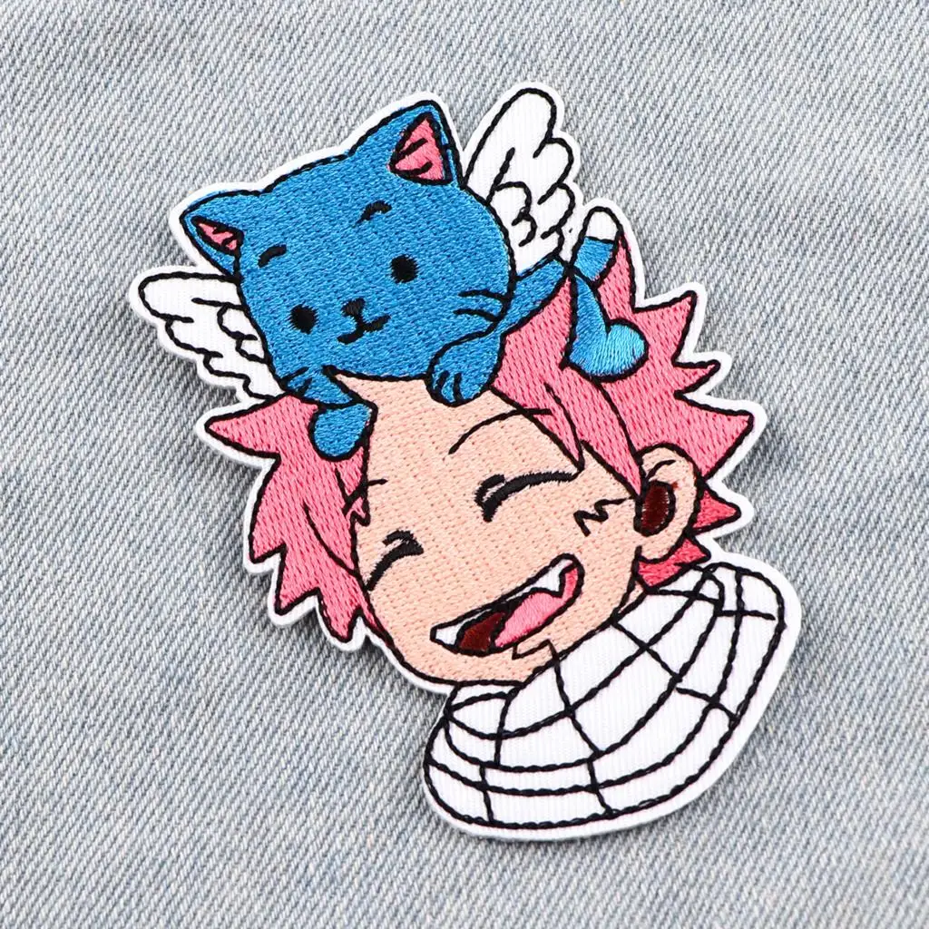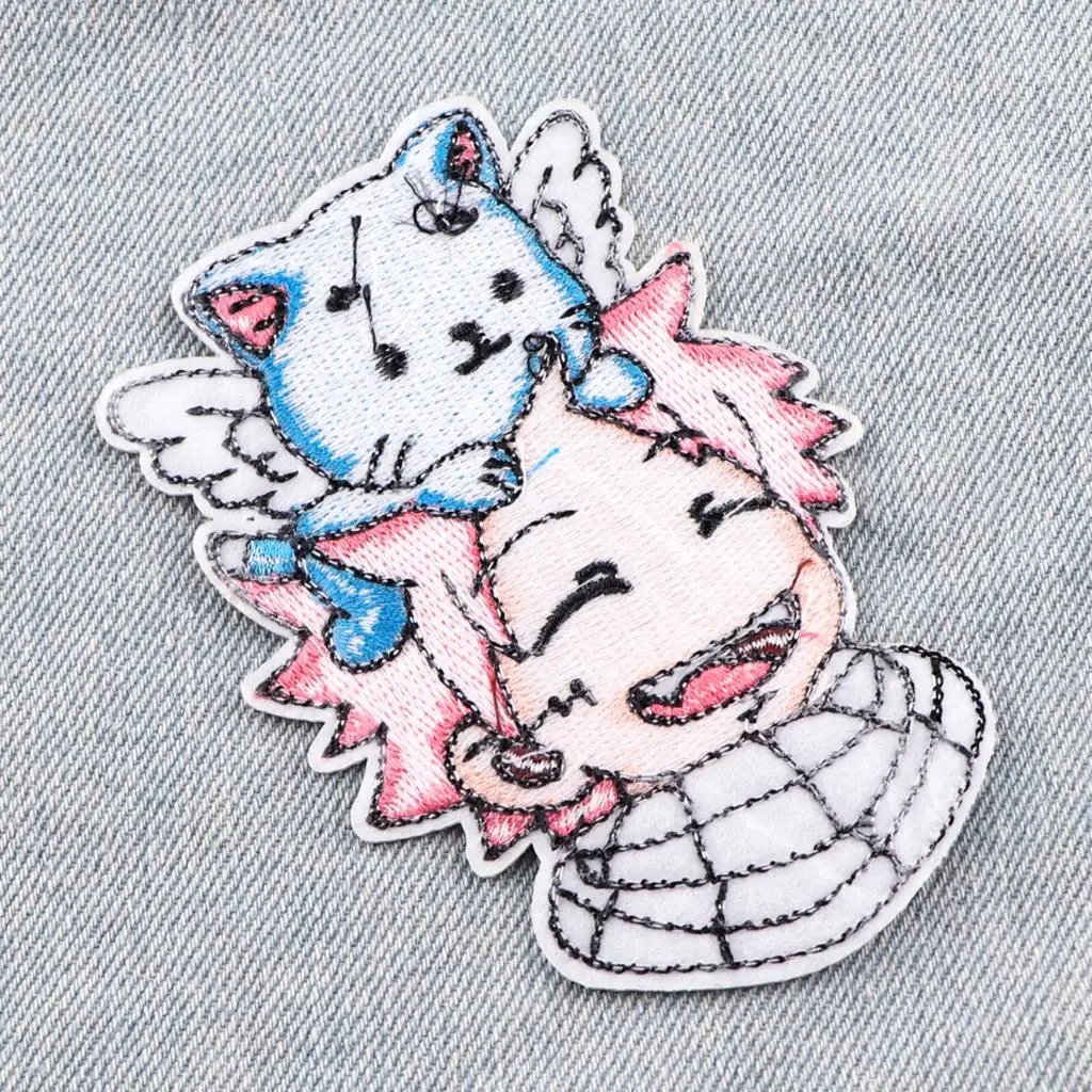 Parches de gato de Anime para ropa, parches bordados de Manga, Parche de planchado para mochila, insignia adhesiva