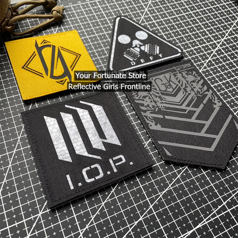 Parches IR Girls Frontline reflectantes IOP 404 Squad DEFY insignia táctica al aire libre Anime Griffin Rebellion Team para ropa