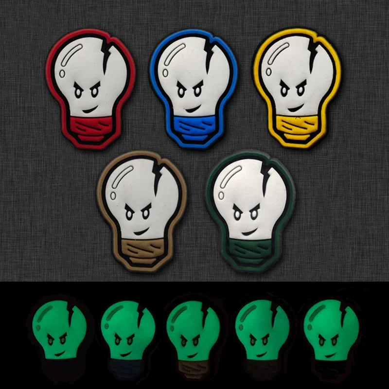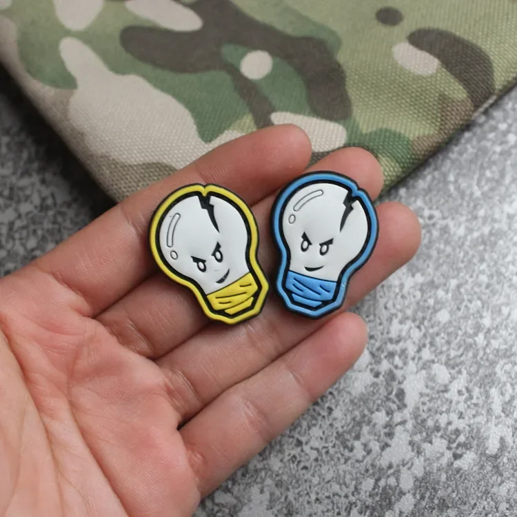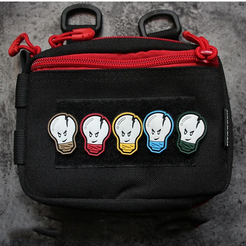 Parches de goma con bombilla pequeña de pvc, gancho y bucle, ropa táctica, parche para mochila, sello de moral 3d, accesorio táctico diy