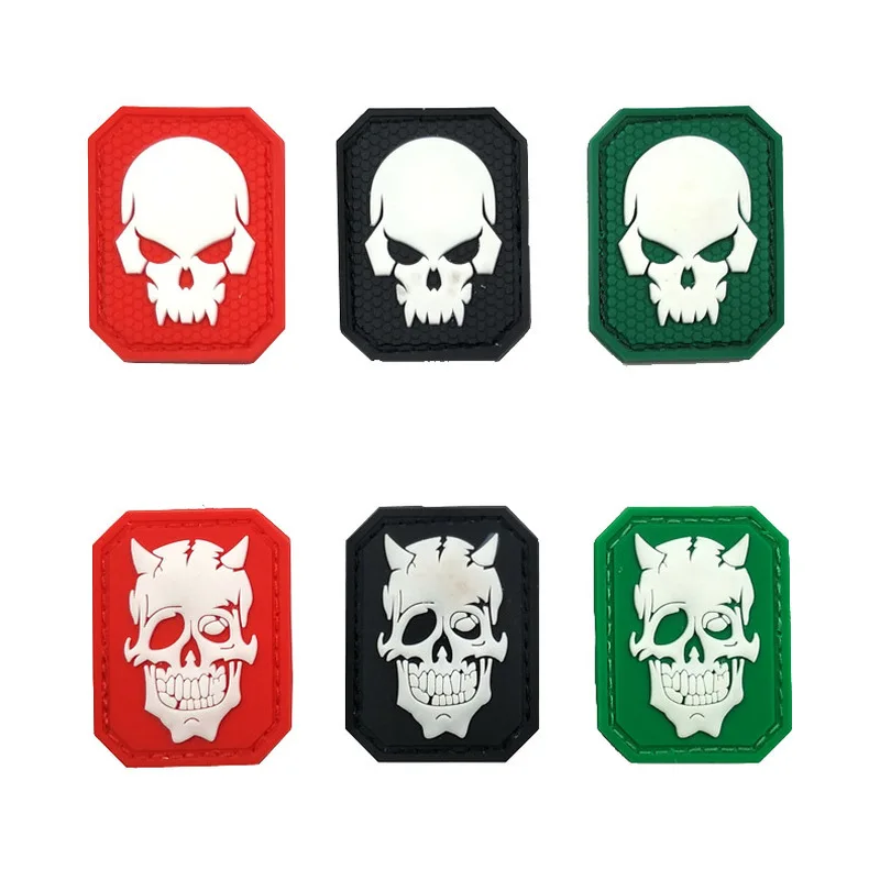 Parches de goma con gancho de PVC para mochila, luz nocturna de calavera fresca, espalda militar, suave, silicona luminosa que brilla en la oscuridad, apliques de insignia