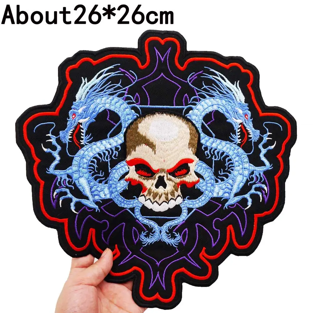 Parches grandes bordados de calavera y Dragón, aplique de costura y hierro, Hip Hop, punk, banda de motorista, ropa de Rock, artículo esencial