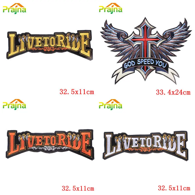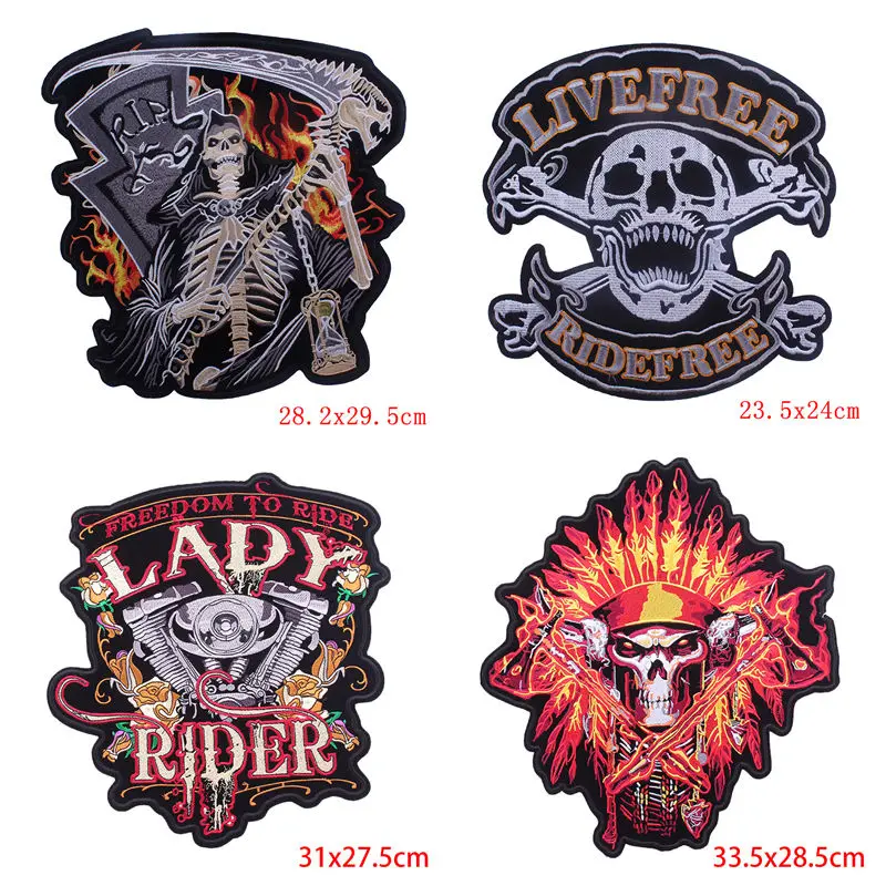 Parches grandes para Club de motocicleta, parches bordados Punk Rock, parches de hierro LIVETORIDE para decoraciones de ropa, parche de costura DIY