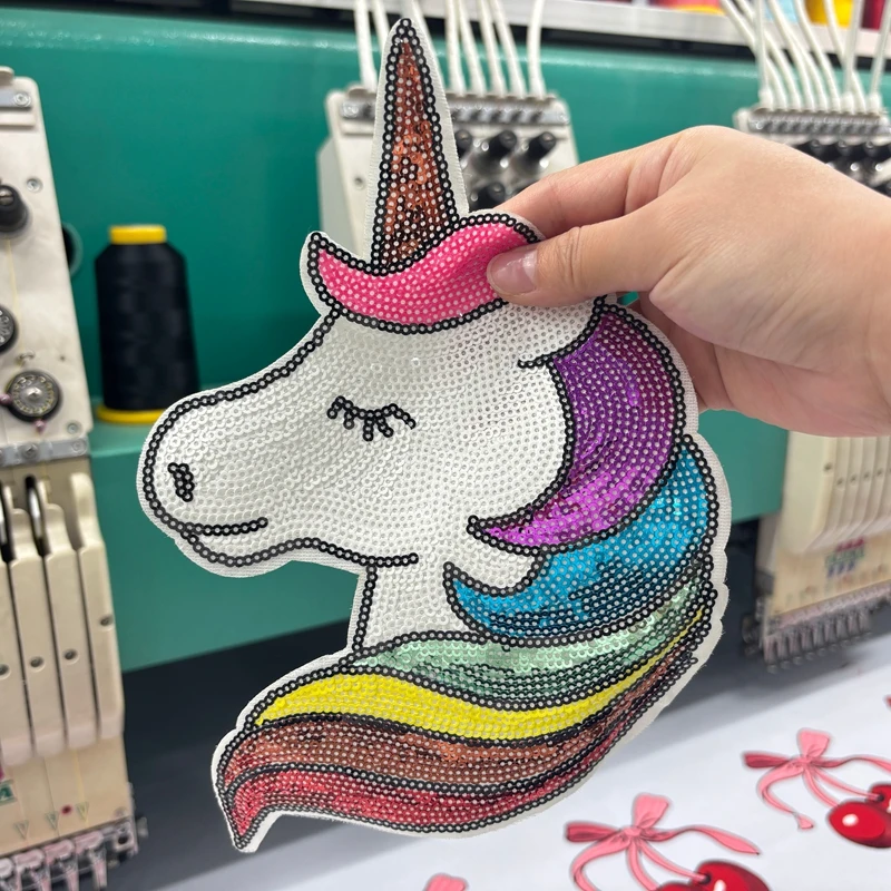 Parches grandes de lentejuelas de unicornio, parches de hierro para ropa, parche bonito de unicornio para niñas, chaqueta, parches brillantes, parches de personalidad
