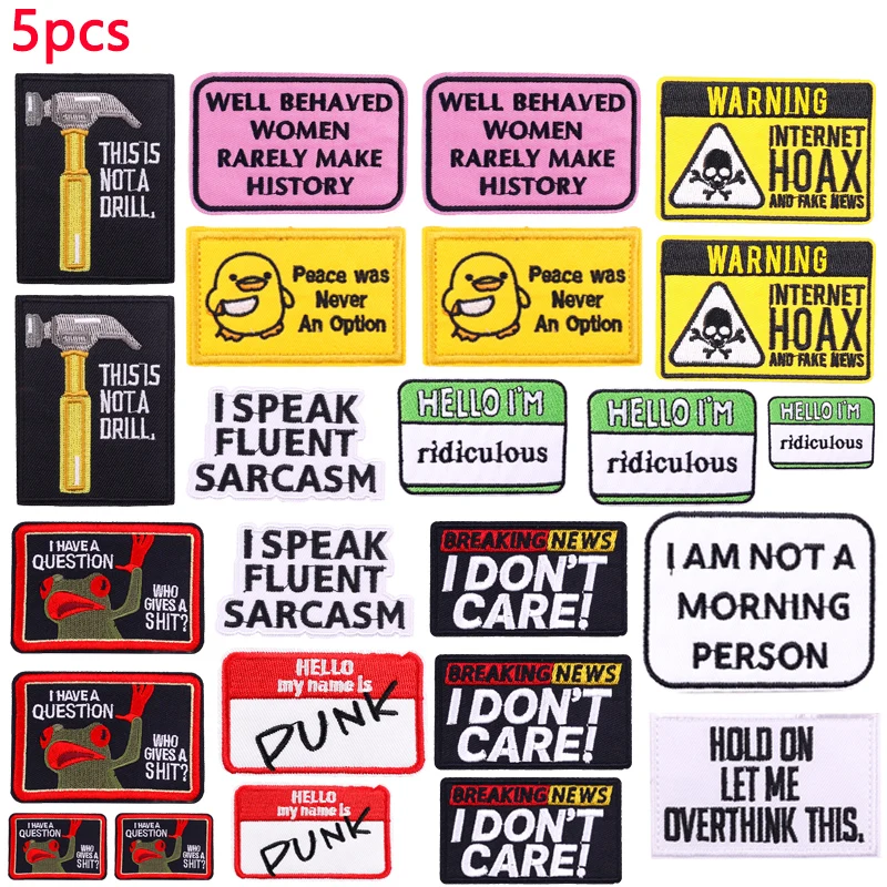 Parches de planchado Punk/letras con personalidad para ropa, parches de bordado con eslogan de letras DIY para costura, parche Fusible para ropa, 5 uds.