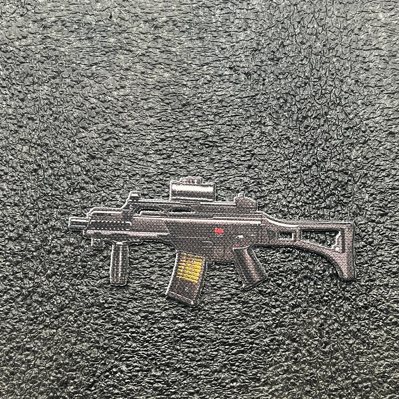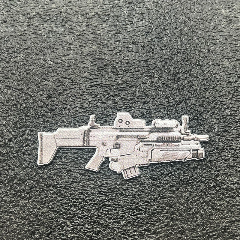 Parches de impresión de armas versión Q, pegatina de decoración de ropa de casco, mochila de capítulo de Rifle, insignia táctica