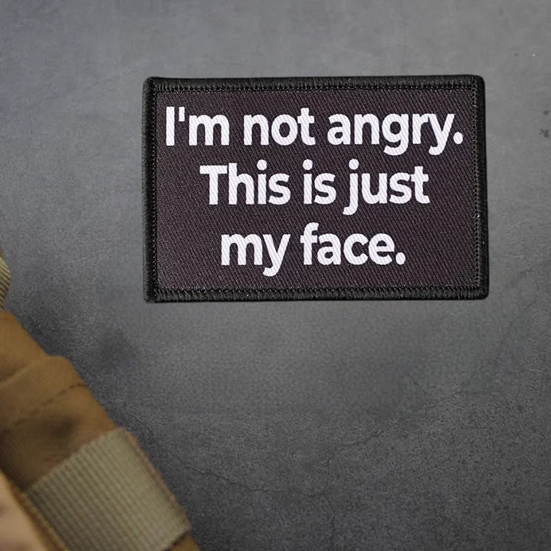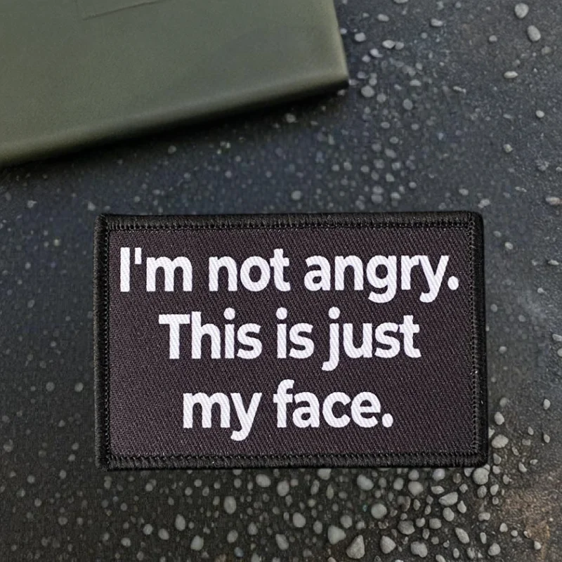 Parches de impresión "No estoy enojado", insignia militar de gancho y bucle, insignia de moral táctica, mochila, pegatina decorativa, brazalete para ropa