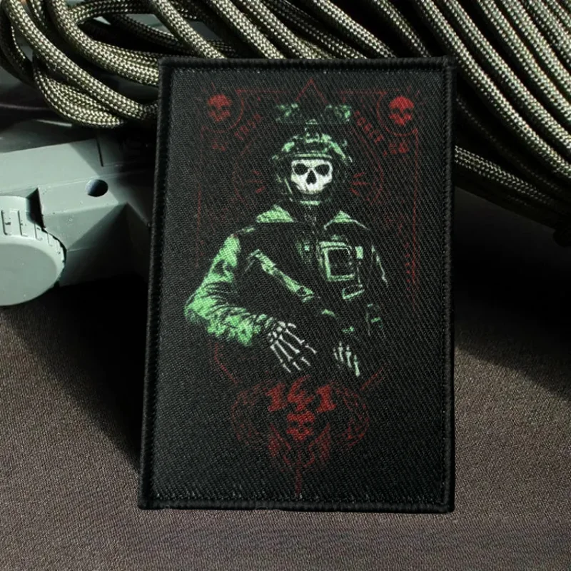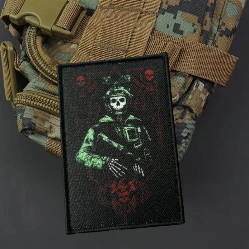 Parches con estampado de calavera de visión nocturna, insignia de calavera guerrera y moral, emblema de gancho y bucle, esqueleto, FORMA DE TASK, brazalete, pegatinas para mochila