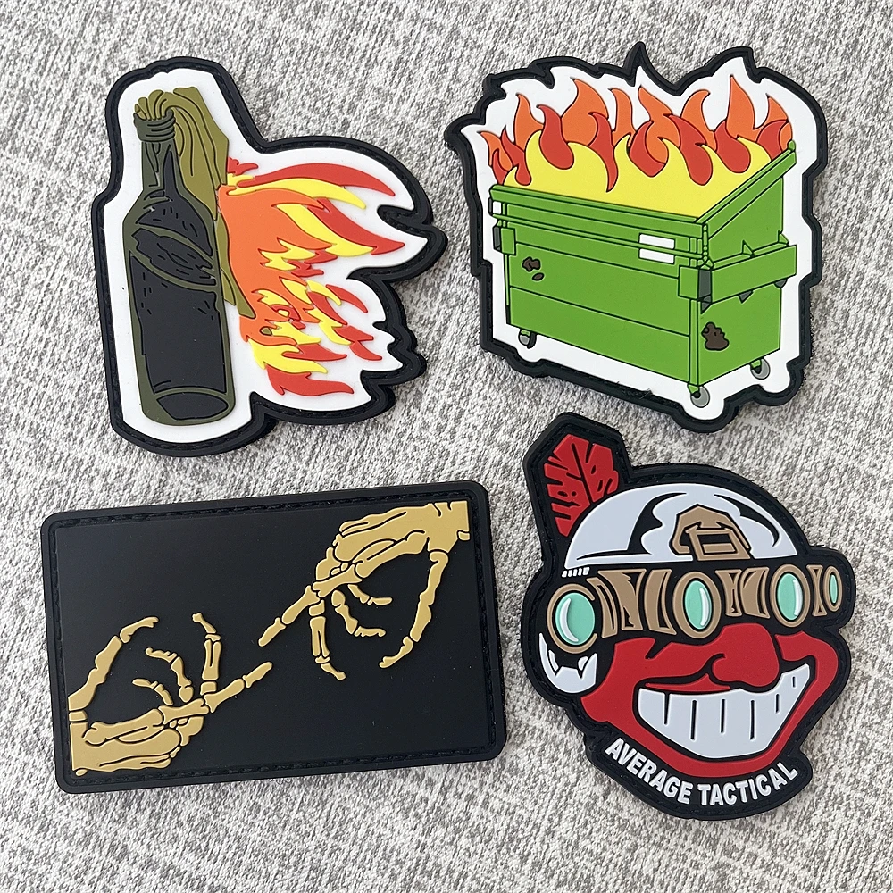 VERAGE TÁCTICO Parches indios PVC Dumpster Fire Molotov Cocktail Morale Badge Mochila Gancho y bucle Etiqueta Crea el mundo