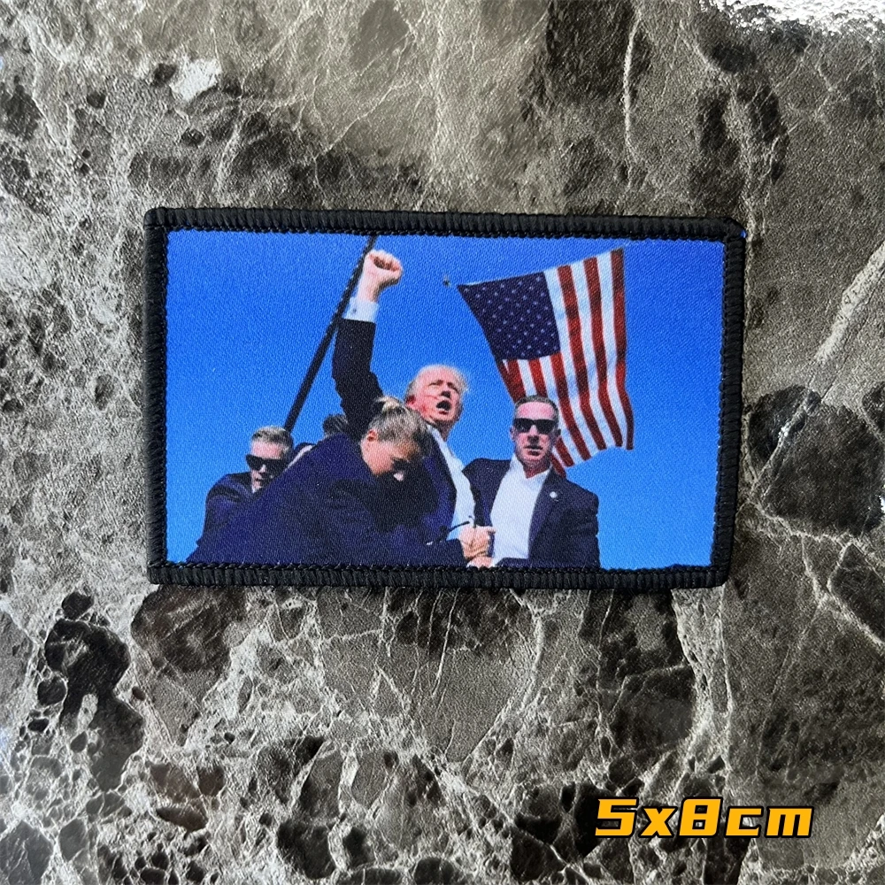 Parches de insignia de moral de atribución de asesinato de Trump, patriotismo táctico de salutos de Trump con puños después de la asignación, pegatina
