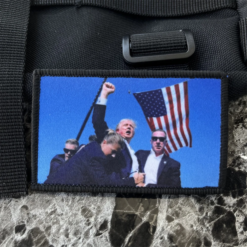 Parches de insignia de moral de atribución de asesinato de Trump, patriotismo táctico de salutos de Trump con puños después de la asignación, pegatina